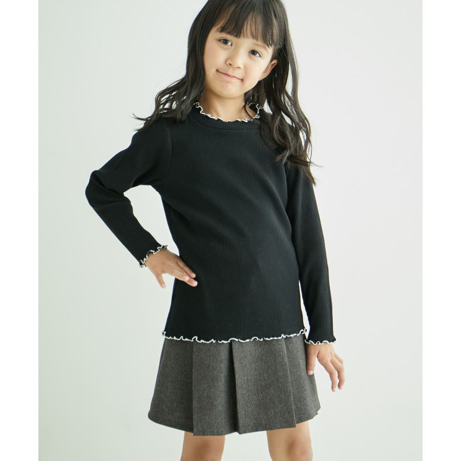 【KIDS】配色フリルネックニットプルオーバー/WEB限定サイズ:110cm