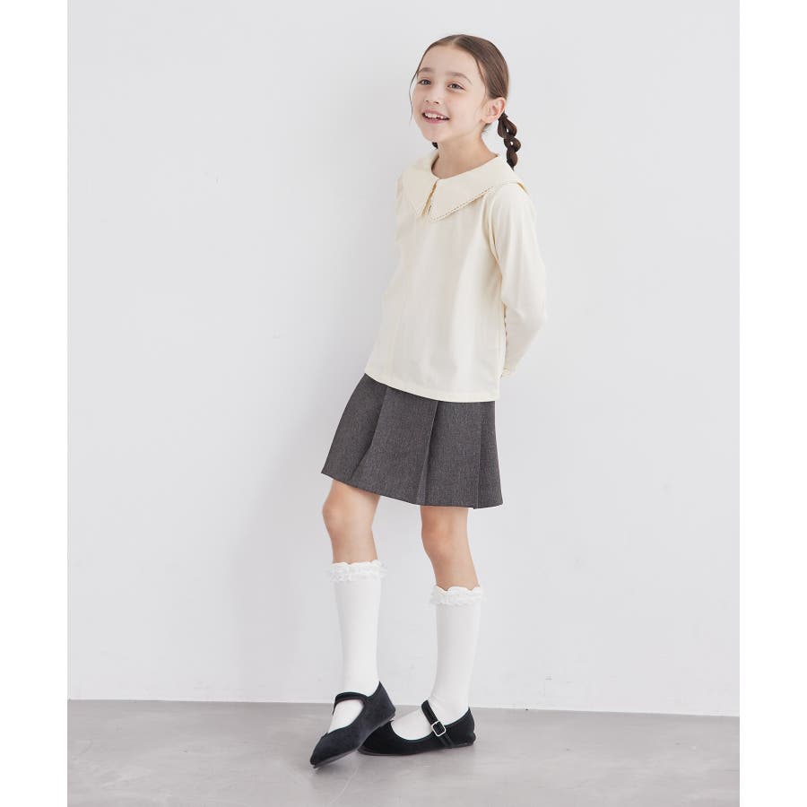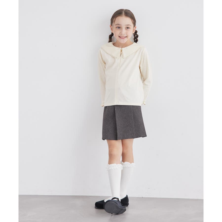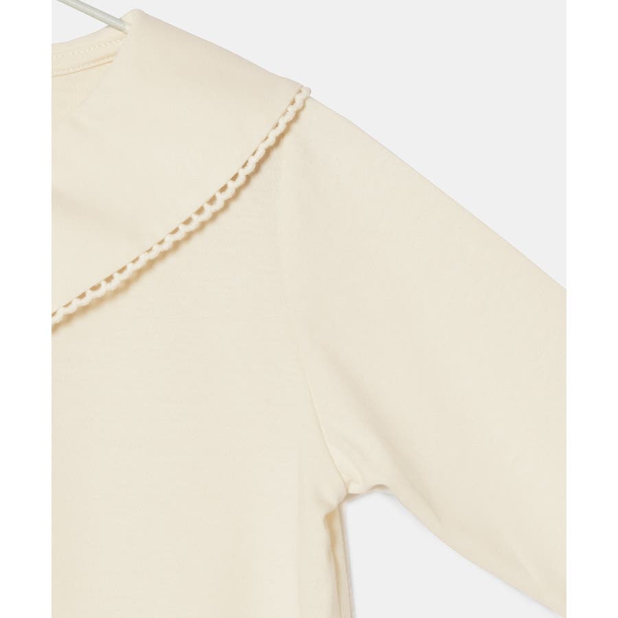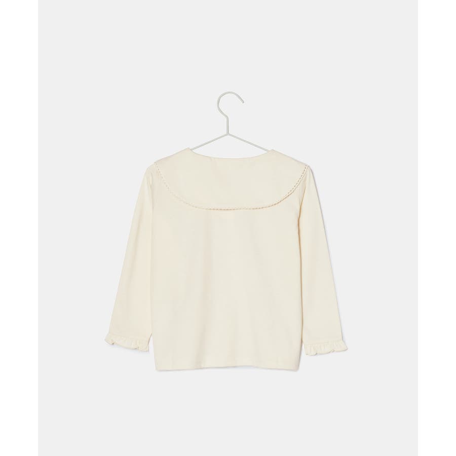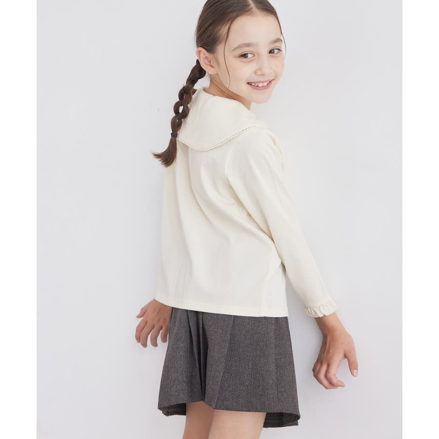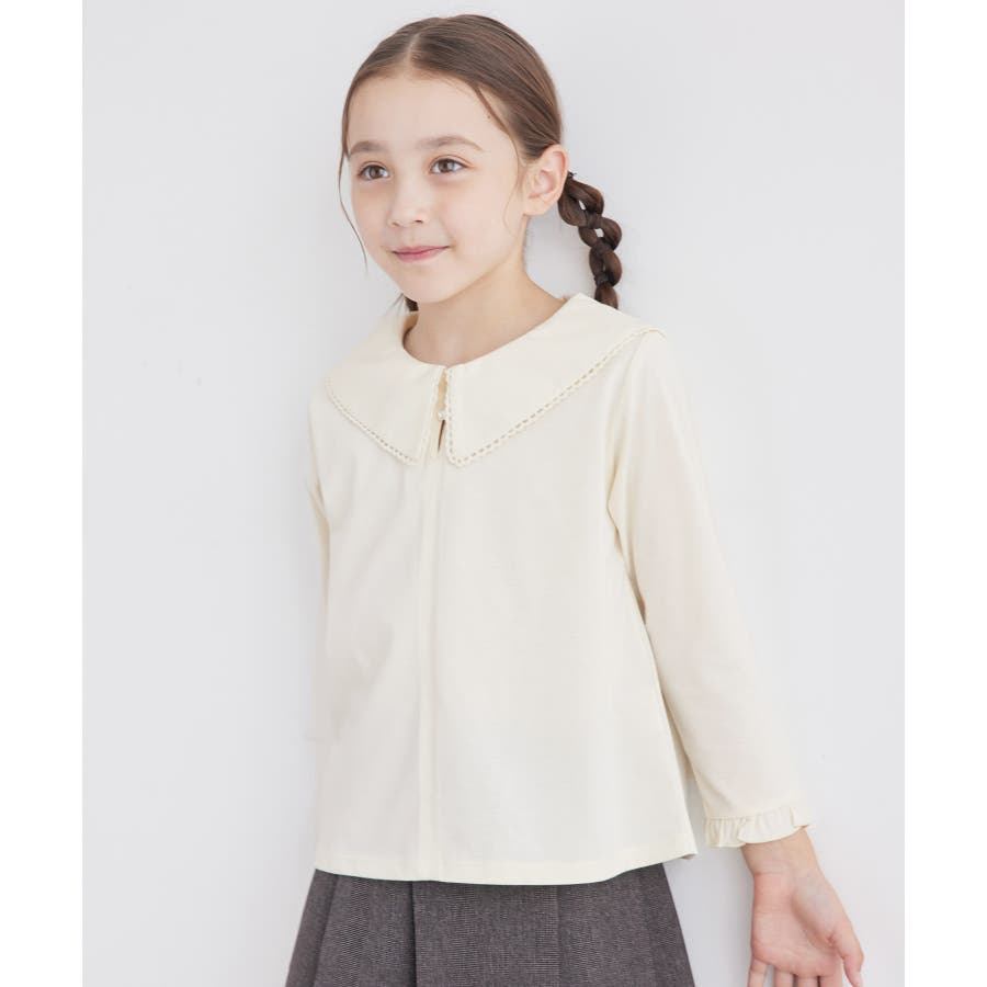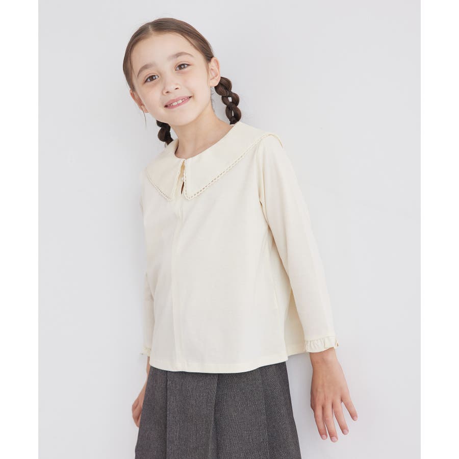 【デザイン・シルエット】 ・セーラーカラーにも近い、ダイナミックなビッグカラーデザイン。 ・ブラウス見えの上品カットソー。 ・袖先のフリル、襟のピコレース、ネックのパールボタンがスウィートなアクセント。 ・きちんと感を持ち合わせた一枚はお出かけにも活躍。 【カラー】 ・ブラック、アイボリーのオンラインストア限定カラーを含む2色展開。 【スタイリングポイント】 ・ジャンパースカートやサロペットとの重ね着に便利。 ・シンプルなパンツやスカート合わせで、きちんとした席にも活躍。 ----------------------------- 裏地:なし 透け感:キナリ(16)はややあり 伸縮性:ややあり 生地感・厚さ:普通 ボタン:全て開閉可能 季節:秋~春 ----------------------------- ※撮影時の光、お使いのモニター環境によって色の見え方が違う場合がございます。 ※ブラック(01)、110cmはWEB限定。