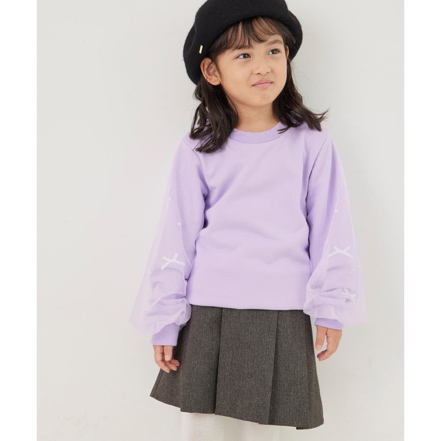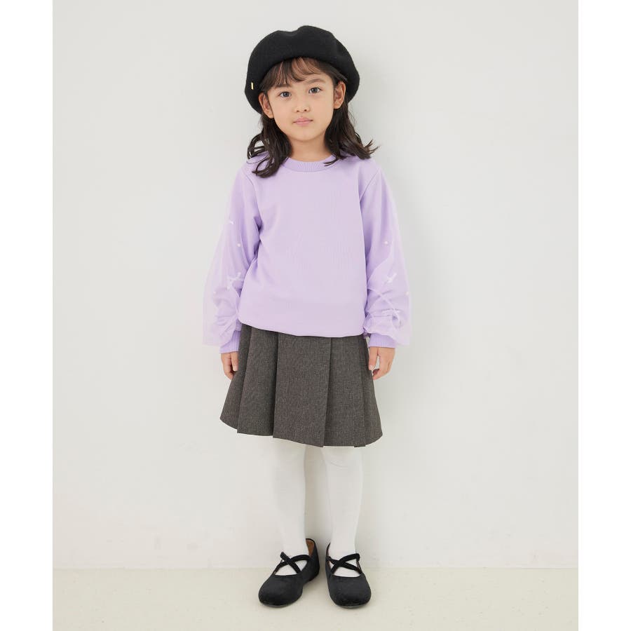 【素材感】 ・表面感のきれいな裏毛素材。 【デザイン・シルエット】 ・袖に小さなリボンをランダムに飾ったスウェットプルオーバー。 ・カジュアルながらもガーリッシュな仕上がり。 ・同素材でカーディガン(品番:GRK54010)も展開。 【カラー】 ・ブラック、ライトグレー、ラベンダーの3色展開。 【スタイリングポイント】 ・ジーンズやカーゴパンツのカジュアルボトムに合わせるのもおしゃれ。 ・フリルスカートやプリーツスカートできちんと感をアップも◎。 ・同シリーズでスカート(品番:GRC54020)も展開しているので、セットアッ応もおすすめ。 ----------------------------- 裏地:なし 透け感:なし 伸縮性:ややあり 生地感・厚さ:普通 季節:春~秋 ----------------------------- ※撮影時の光、お使いのモニター環境によって色の見え方が違う場合がございます。 ※モデル身長:109cm 着用サイズ:120
