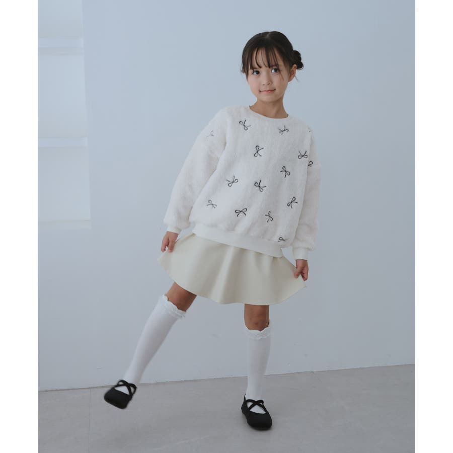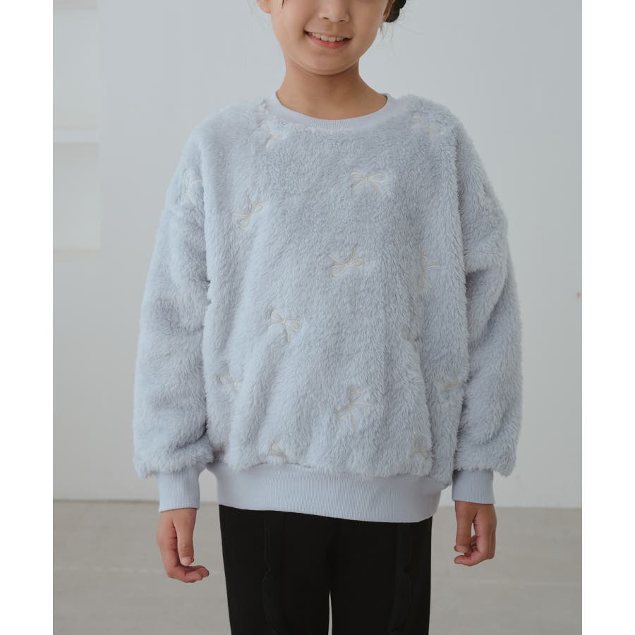 【KIDS/キッズ】リボン刺繍ボアプルオーバー
