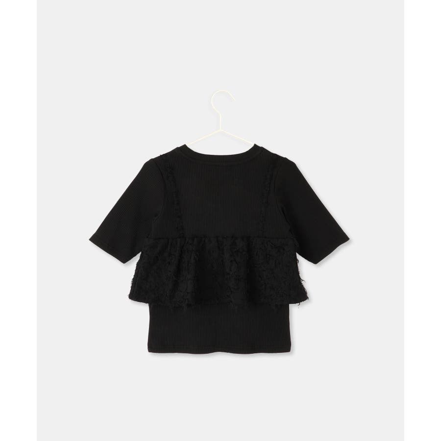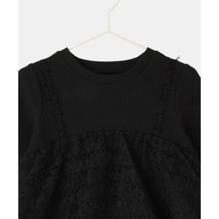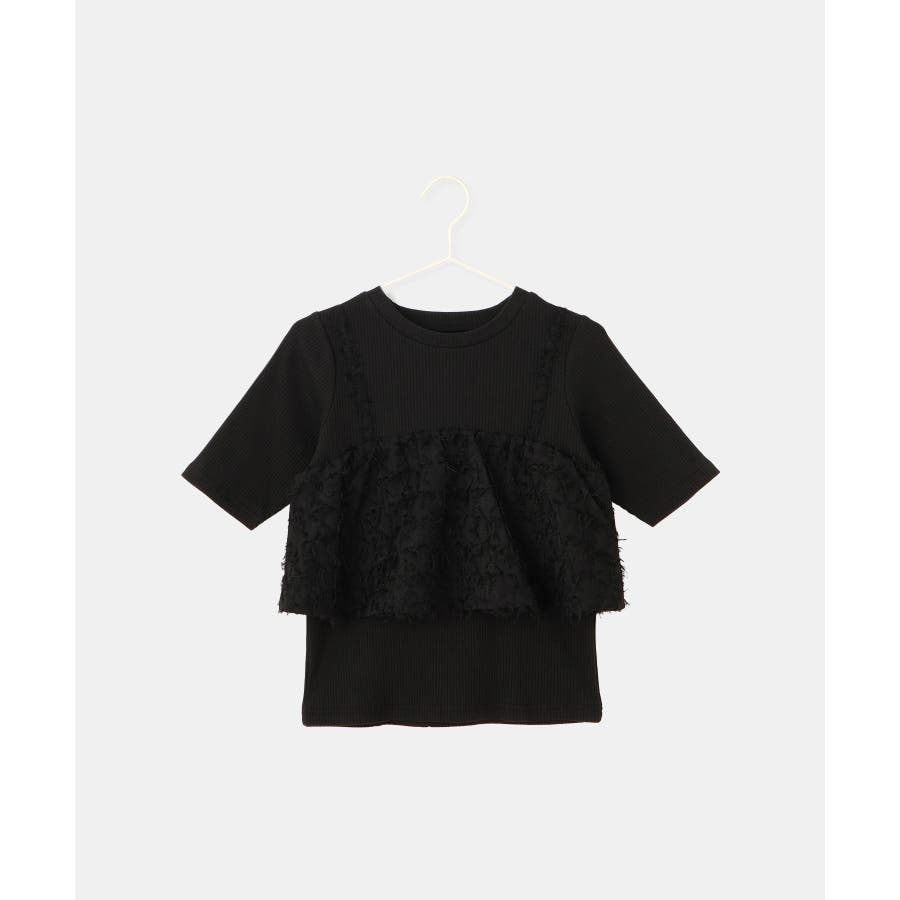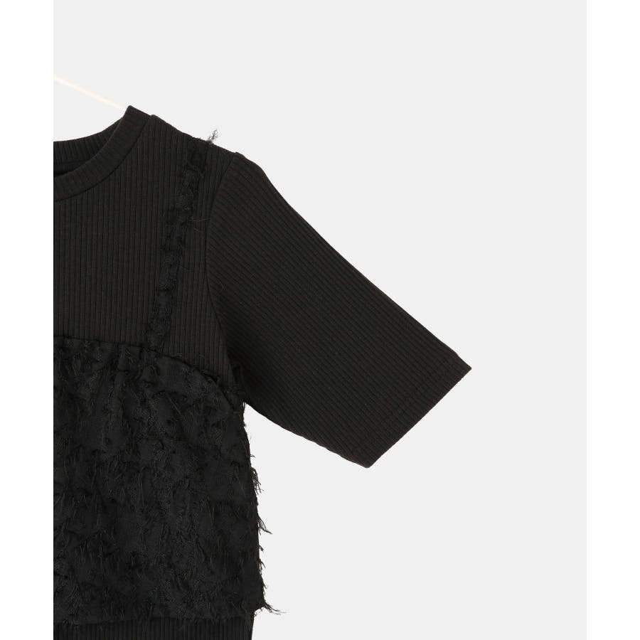 ・テレコカットソーとフェザー素材のビスチェがドッキングされたトップス。