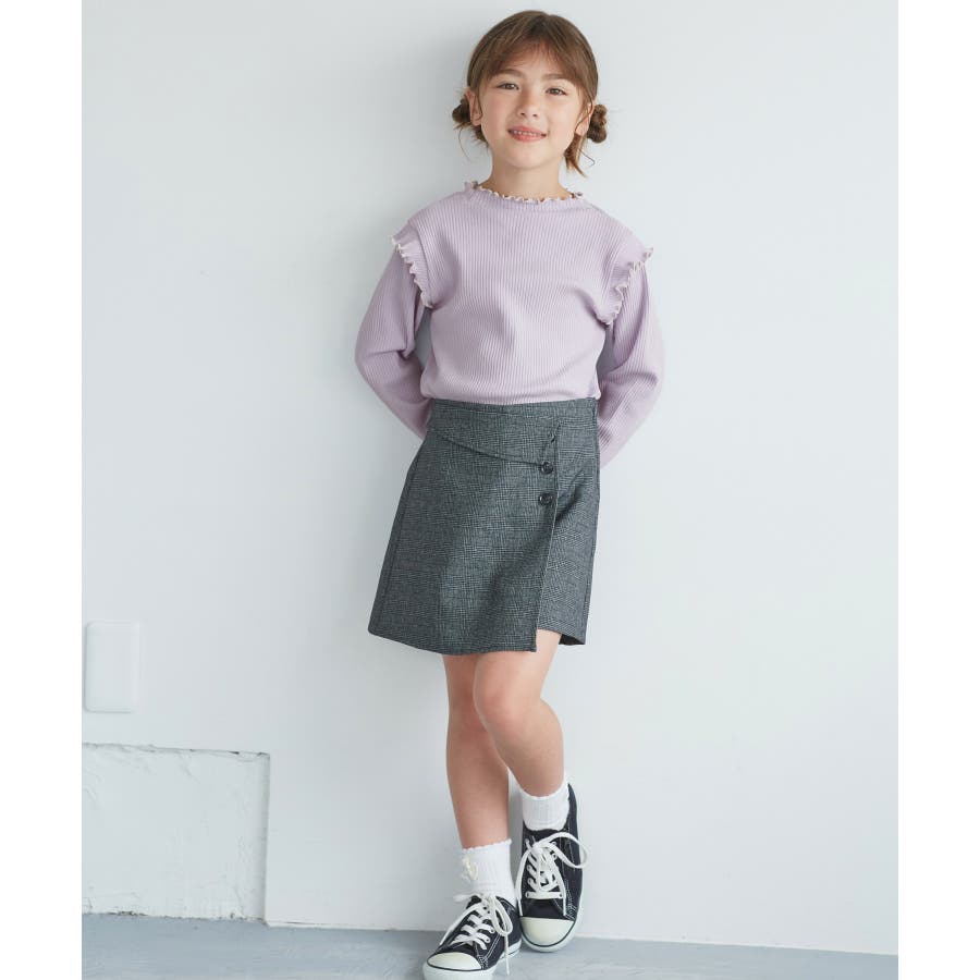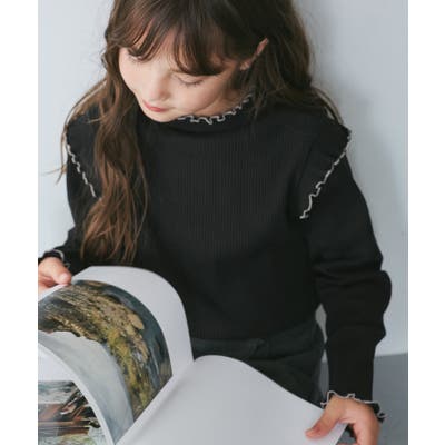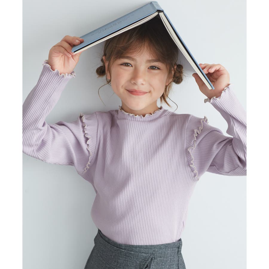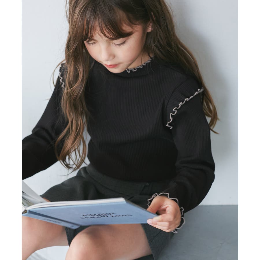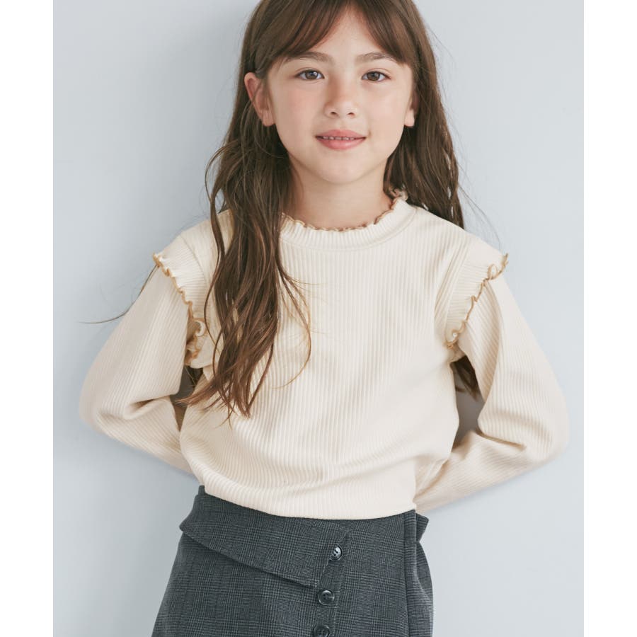 【KIDS/キッズ】プチフリル配色テレコトップス