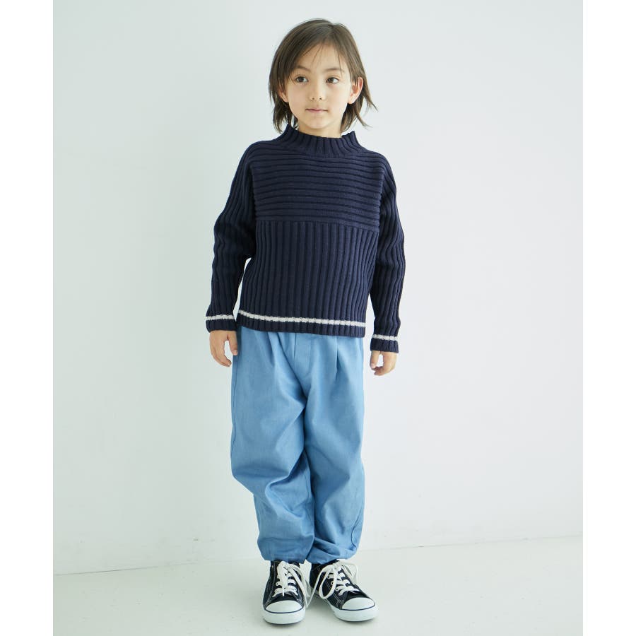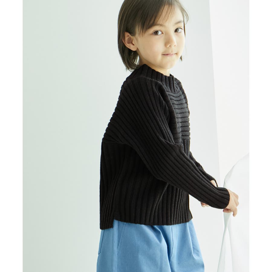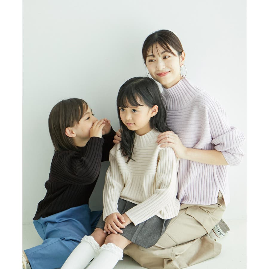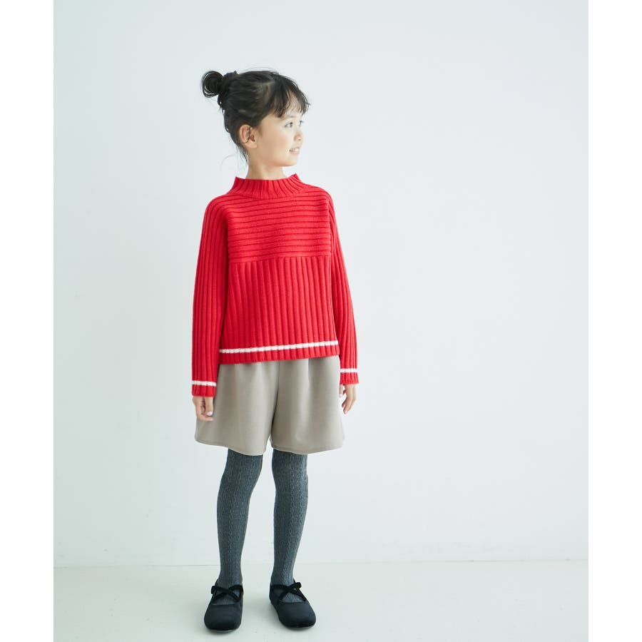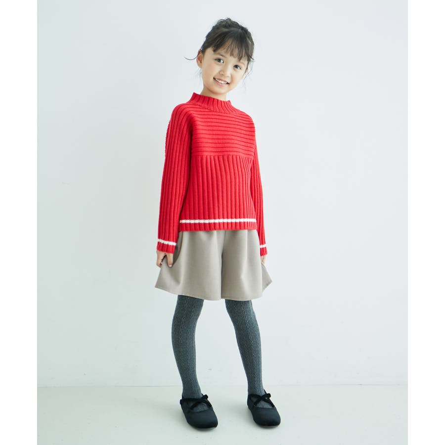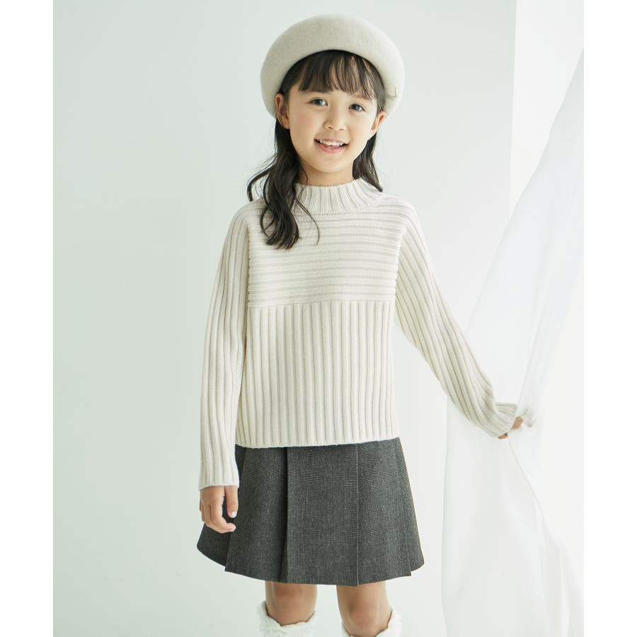 毎年人気のリブ切り替えニットプルオーバーが今年も登場! : 【素材感】 ・帯電防止・洗濯機OKの機能素材。 【デザイン・シルエット】 ・ダイナミックなワイドシルエットのハイネックプルオーバー。 ・身頃の切り替えで、リブ編みの方向を変えているのが特徴。 ・首もとゆったりでノンストレスに着られるアイテム。 ・前後差ヘムはサイドスリット入り。 【カラー】 ・カラーによって柄が異なります。 ブラック(01)キナリ(16):無地 ネイビー系(41):ネイビー×ホワイトのライン入り レッド系(61):レッド×ホワイトのライン入り 【スタイリングポイント】 ・柄物スカートや、モノトーンにはカラーパンツがお似合い。 ・レッドやホワイトはブルーのジーンズと好相性。 ・同シリーズで大人(品番:GDM54100)も展開しているので、親子お揃いもおすすめ。 ----------------------------- 裏地:なし 透け感:なし 伸縮性:ややあり 生地感・厚さ:やや厚手 ポケット:なし 季節:秋・冬 ----------------------------- ※撮影時の光、お使いのモニター環境によって色の見え方が違う場合がございます。 ※前回好評だったリブ切り替えニットプルオーバー(品番:GRM63000)と同型ですが、若干組成の混率が異なりますので、風合いは異なる場合がございます。 ※モデル身長、着用サイズは詳細画像をご確認ください。