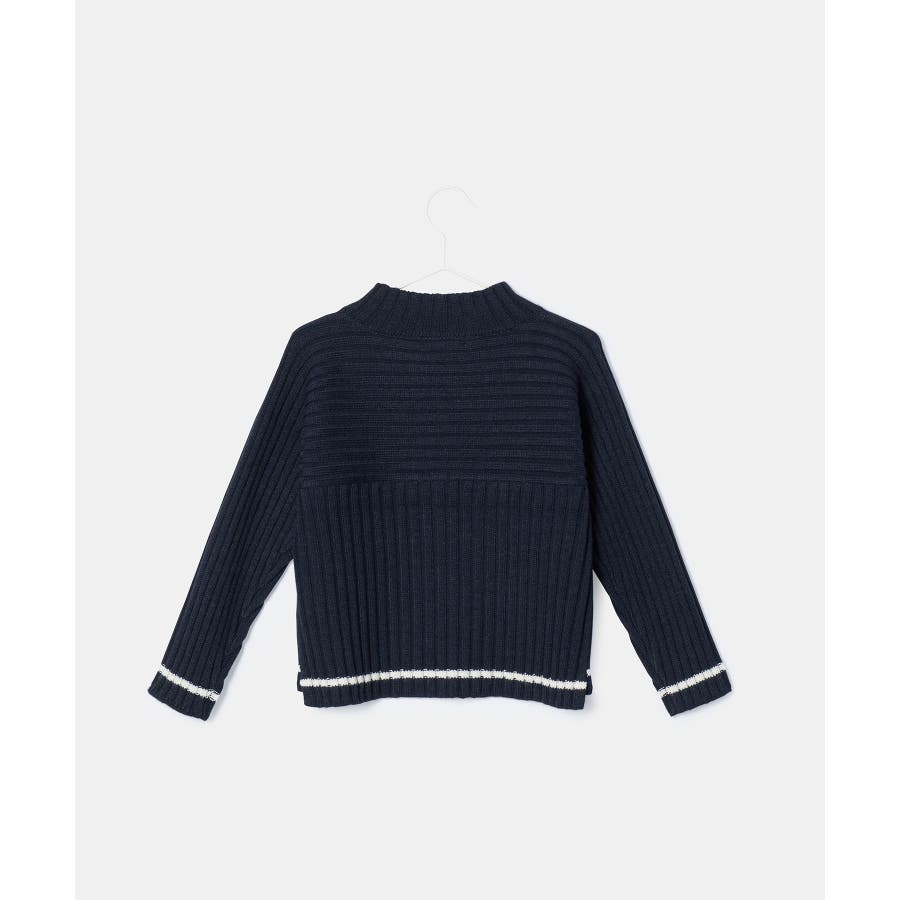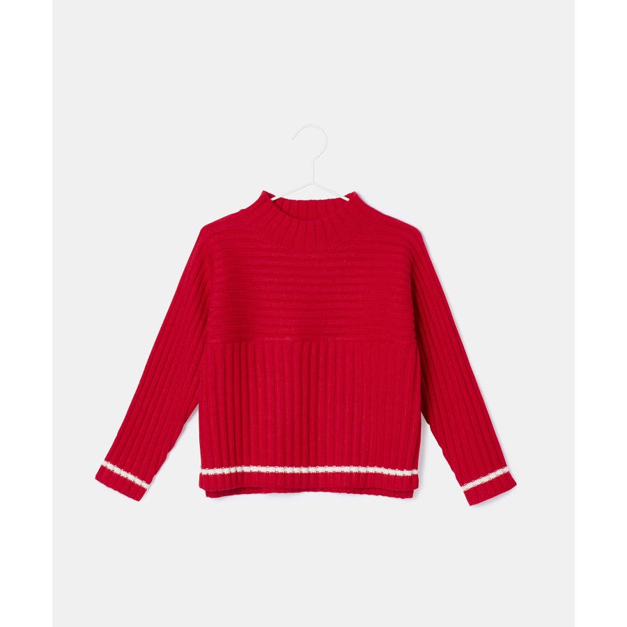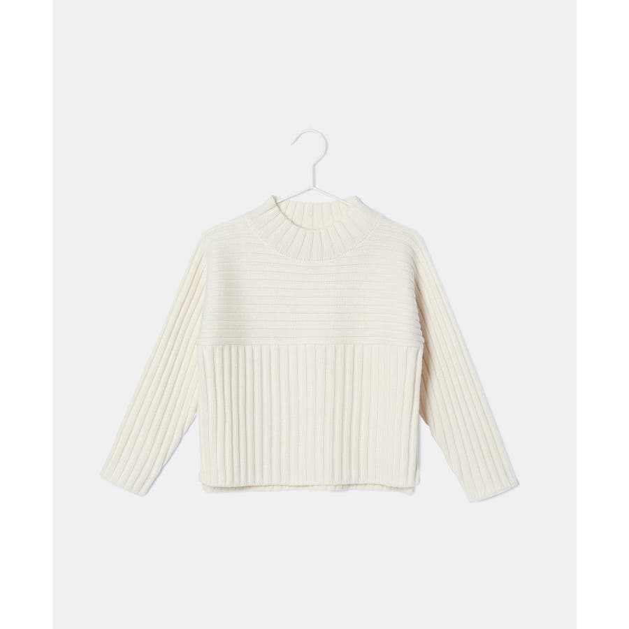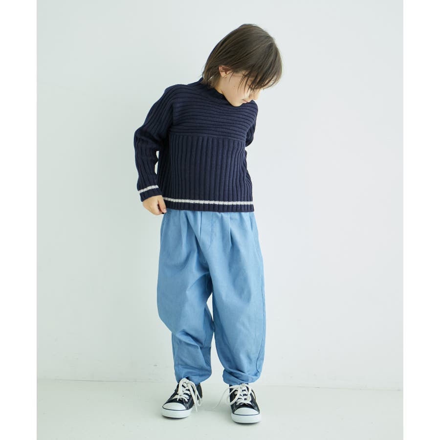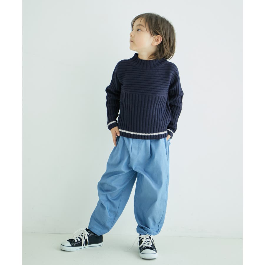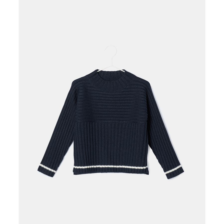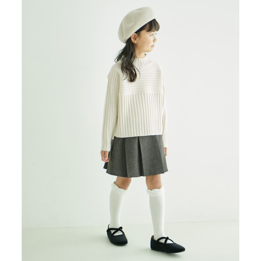 毎年人気のリブ切り替えニットプルオーバーが今年も登場! : 【素材感】 ・帯電防止・洗濯機OKの機能素材。 【デザイン・シルエット】 ・ダイナミックなワイドシルエットのハイネックプルオーバー。 ・身頃の切り替えで、リブ編みの方向を変えているのが特徴。 ・首もとゆったりでノンストレスに着られるアイテム。 ・前後差ヘムはサイドスリット入り。 【カラー】 ・カラーによって柄が異なります。 ブラック(01)キナリ(16):無地 ネイビー系(41):ネイビー×ホワイトのライン入り レッド系(61):レッド×ホワイトのライン入り 【スタイリングポイント】 ・柄物スカートや、モノトーンにはカラーパンツがお似合い。 ・レッドやホワイトはブルーのジーンズと好相性。 ・同シリーズで大人(品番:GDM54100)も展開しているので、親子お揃いもおすすめ。 ----------------------------- 裏地:なし 透け感:なし 伸縮性:ややあり 生地感・厚さ:やや厚手 ポケット:なし 季節:秋・冬 ----------------------------- ※撮影時の光、お使いのモニター環境によって色の見え方が違う場合がございます。 ※前回好評だったリブ切り替えニットプルオーバー(品番:GRM63000)と同型ですが、若干組成の混率が異なりますので、風合いは異なる場合がございます。 ※モデル身長、着用サイズは詳細画像をご確認ください。