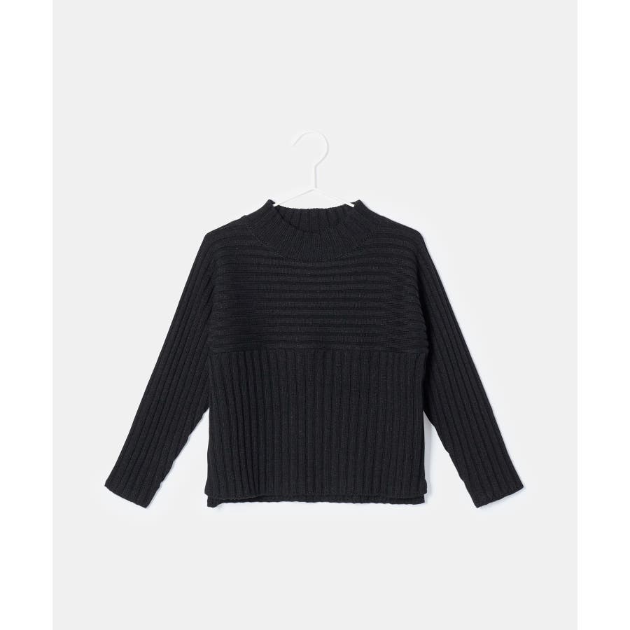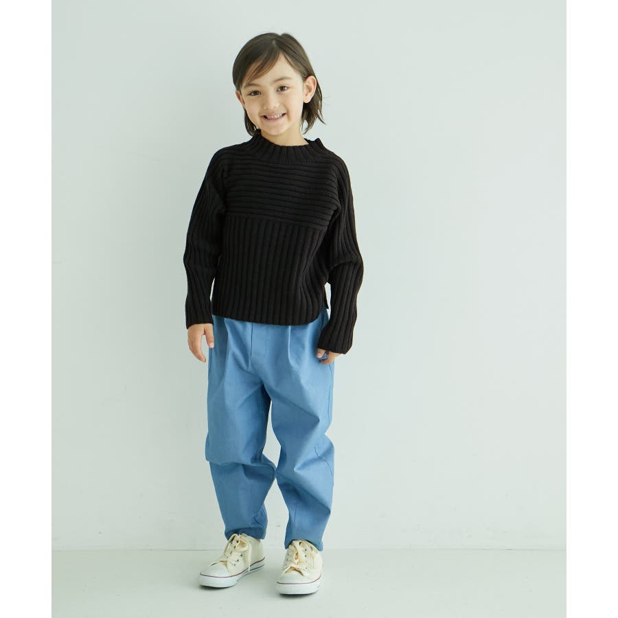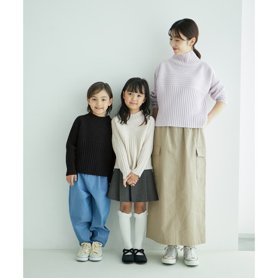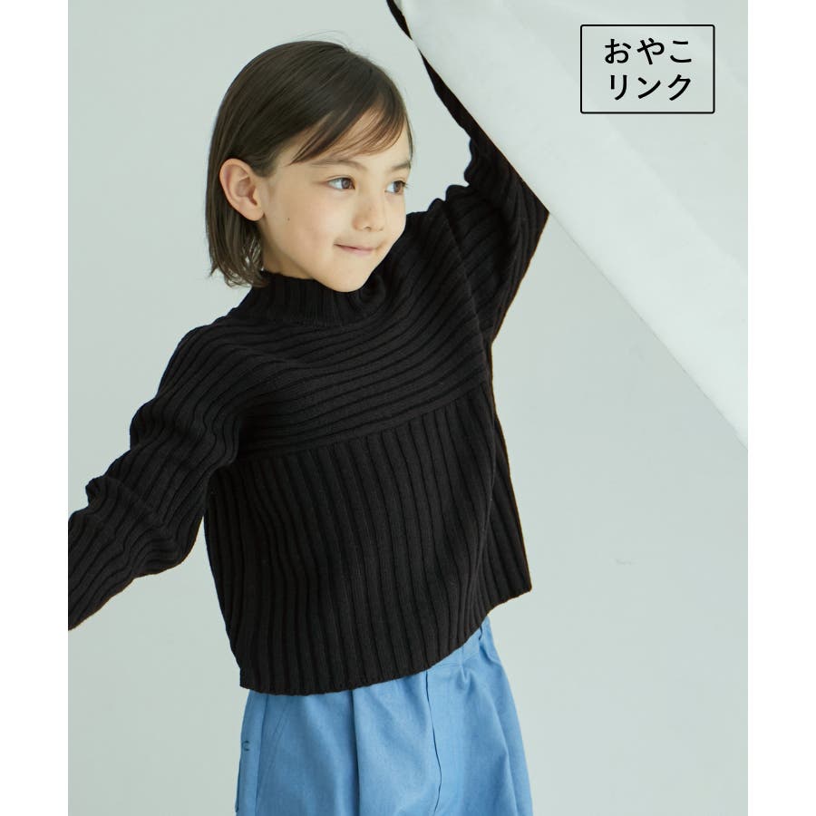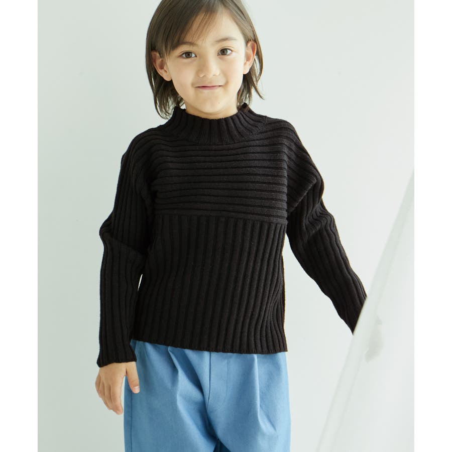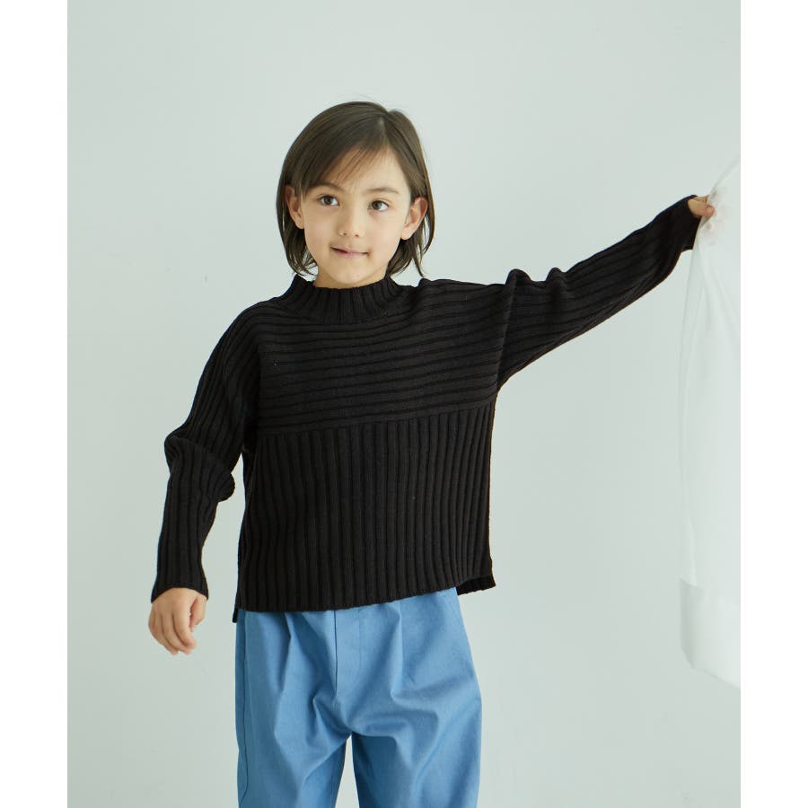 【ブラック(01)】リブ切り替えニットプルオーバー WEB限定サイズ:110cm リンクコーデ