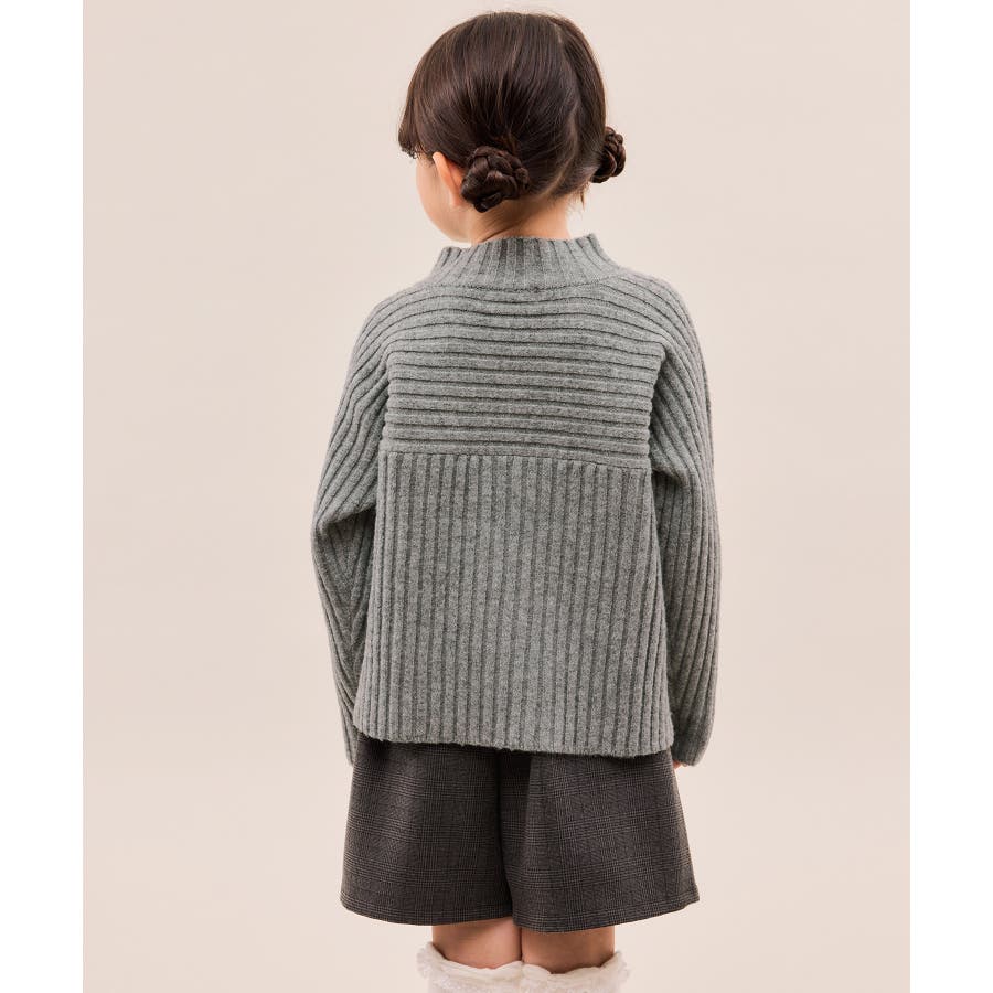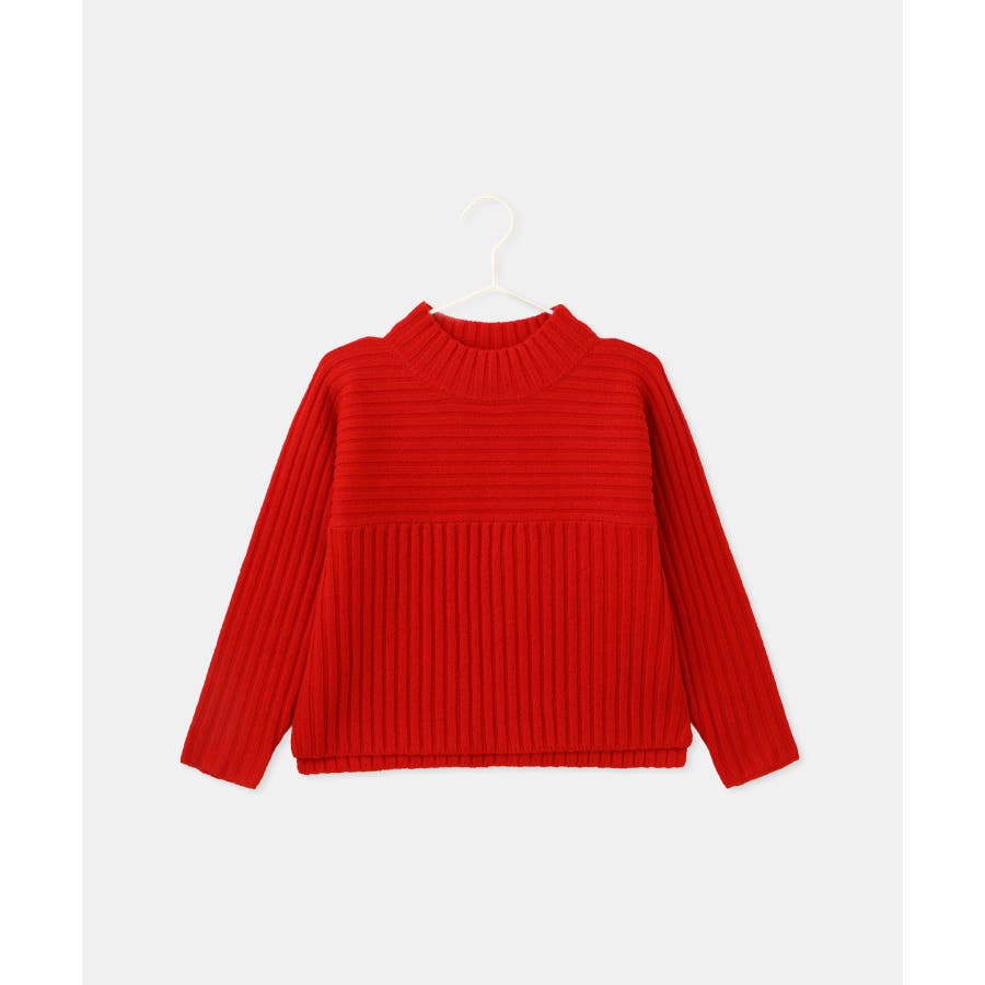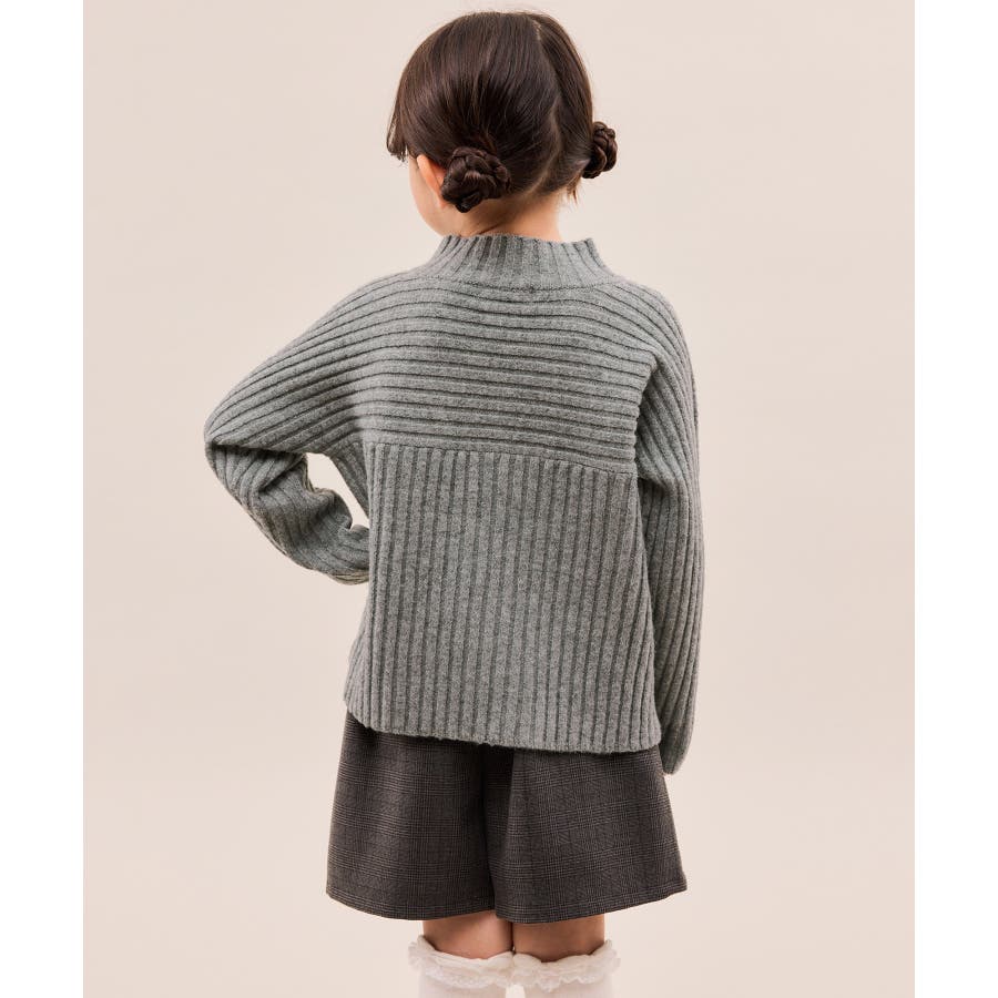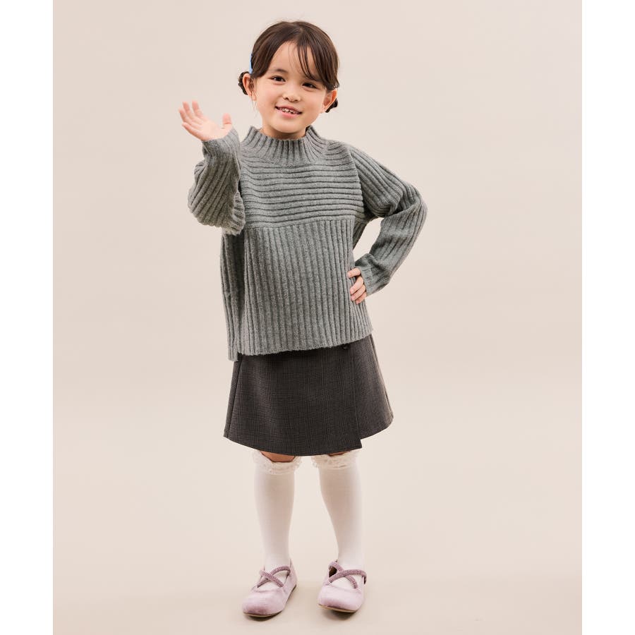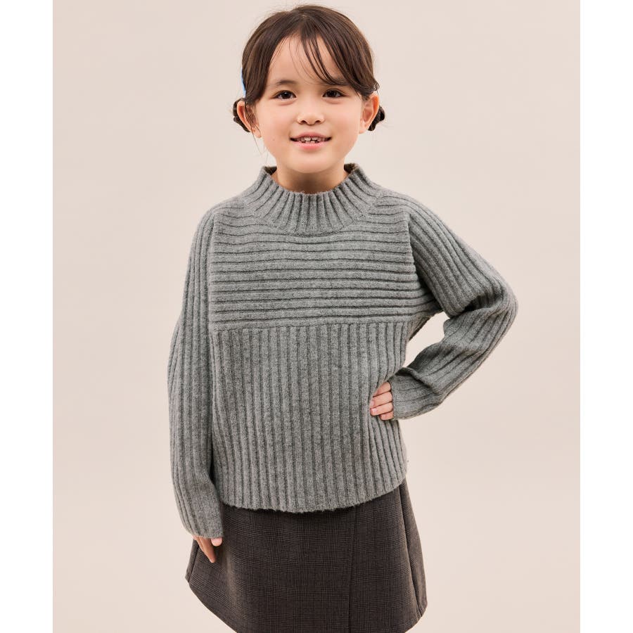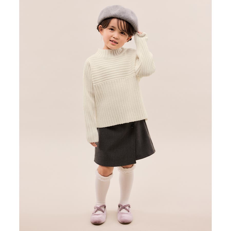 ・異なるリブ編み切り替えが可愛い、表情豊かなデザインニット。