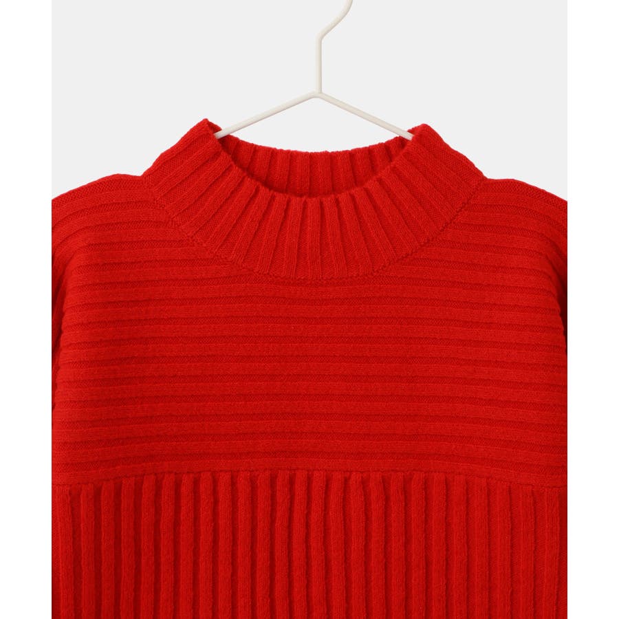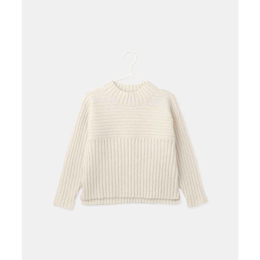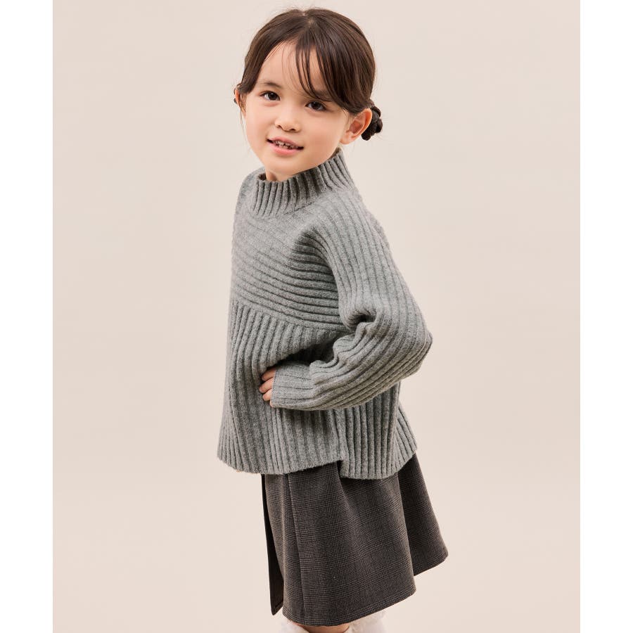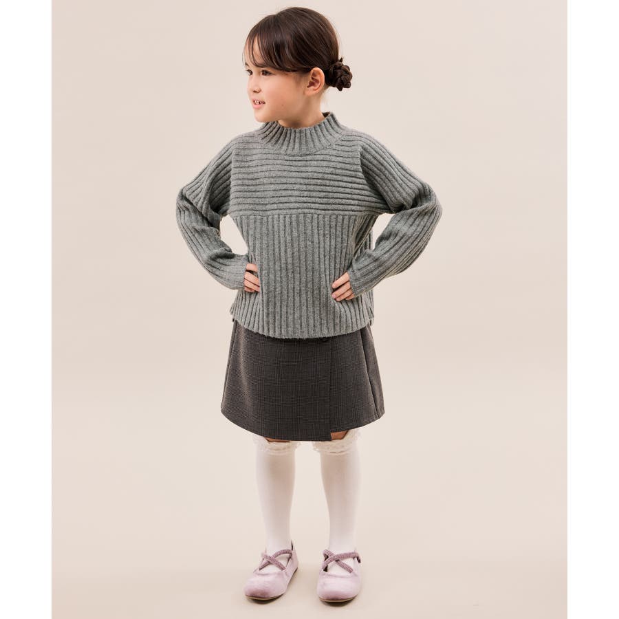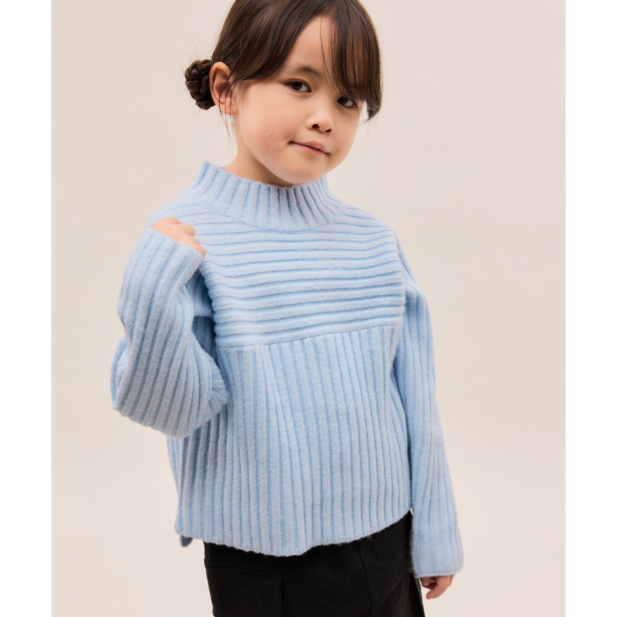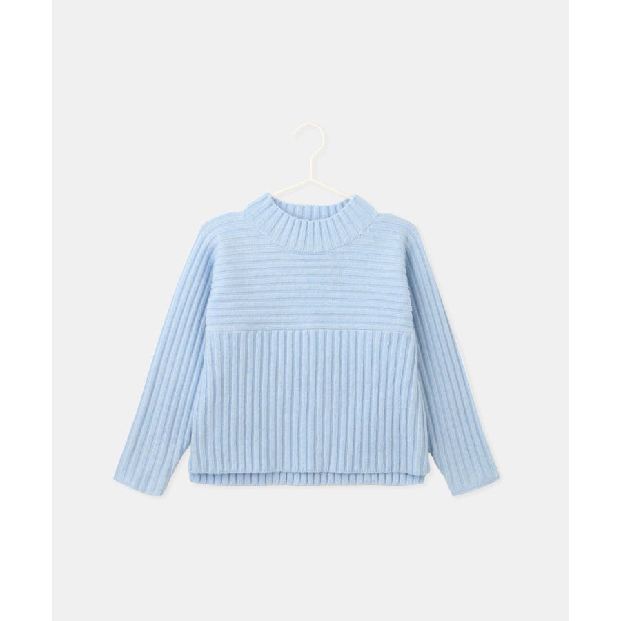 ・異なるリブ編み切り替えが可愛い、表情豊かなデザインニット。