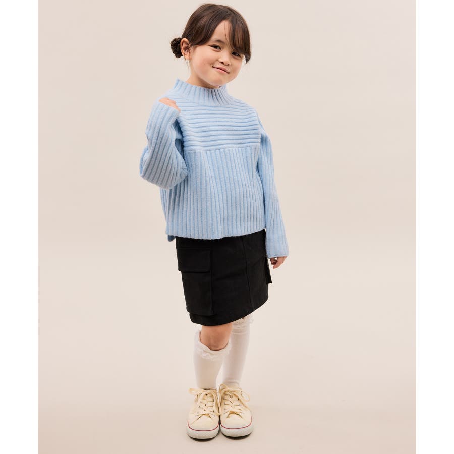 【KIDS キッズ】もちもちリブ切り替えニットプルオーバー イージーケア