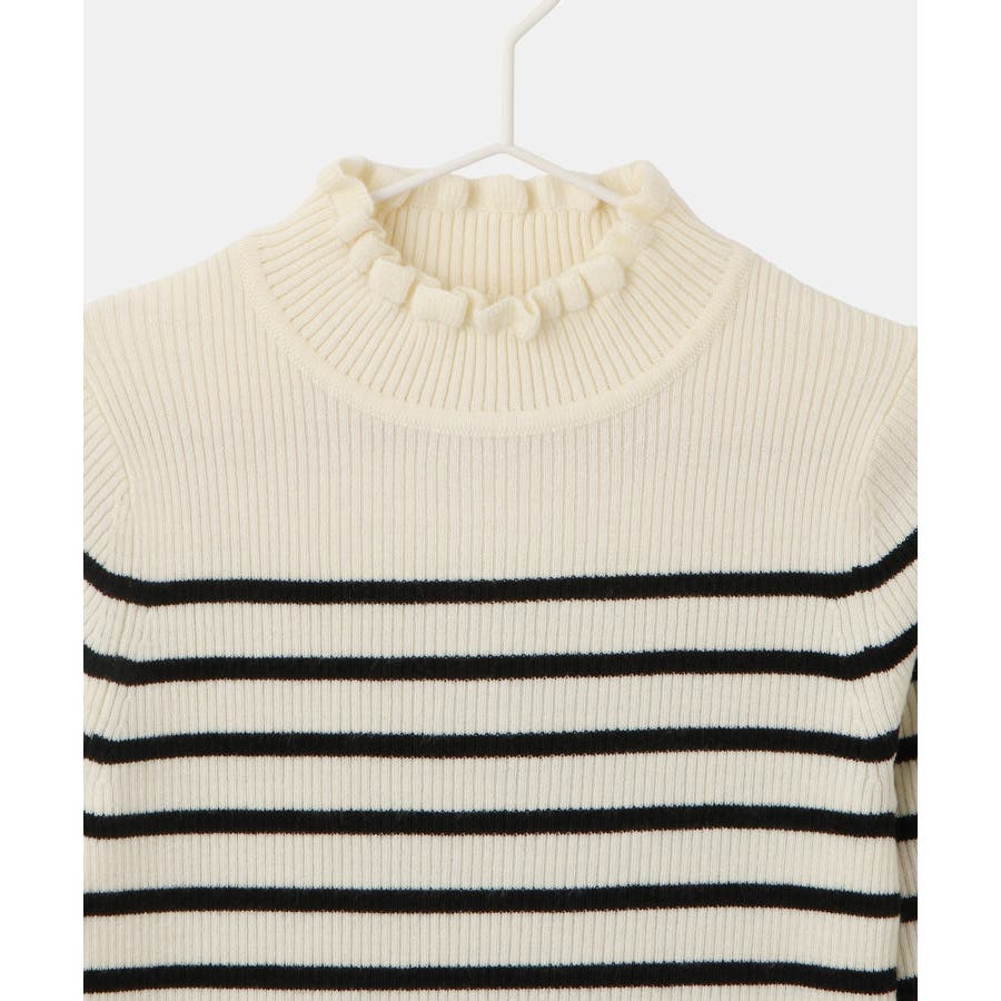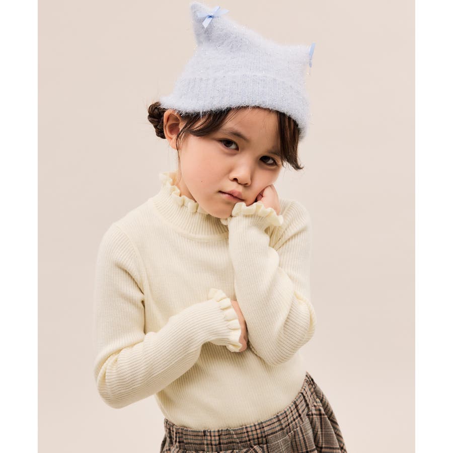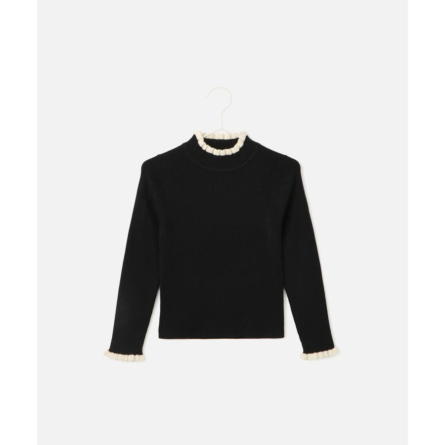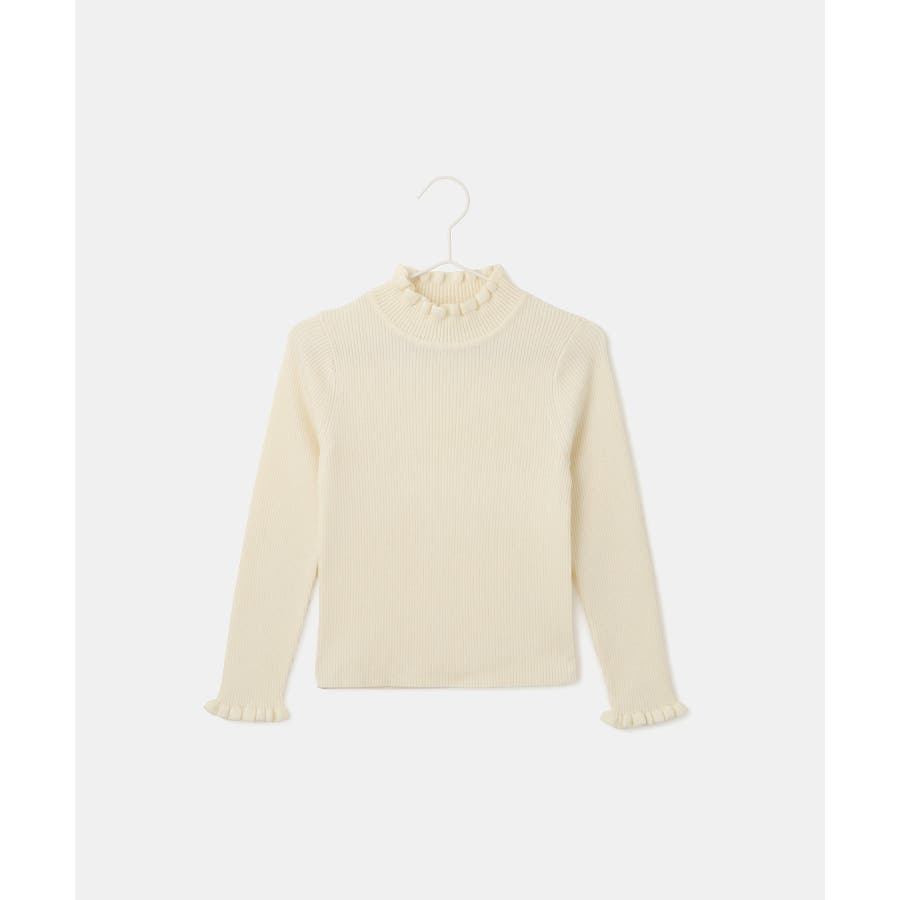 ・ネックラインと袖口のメロウフリルがキュートなアクセントになった、リブ編みのニットプルオーバー。