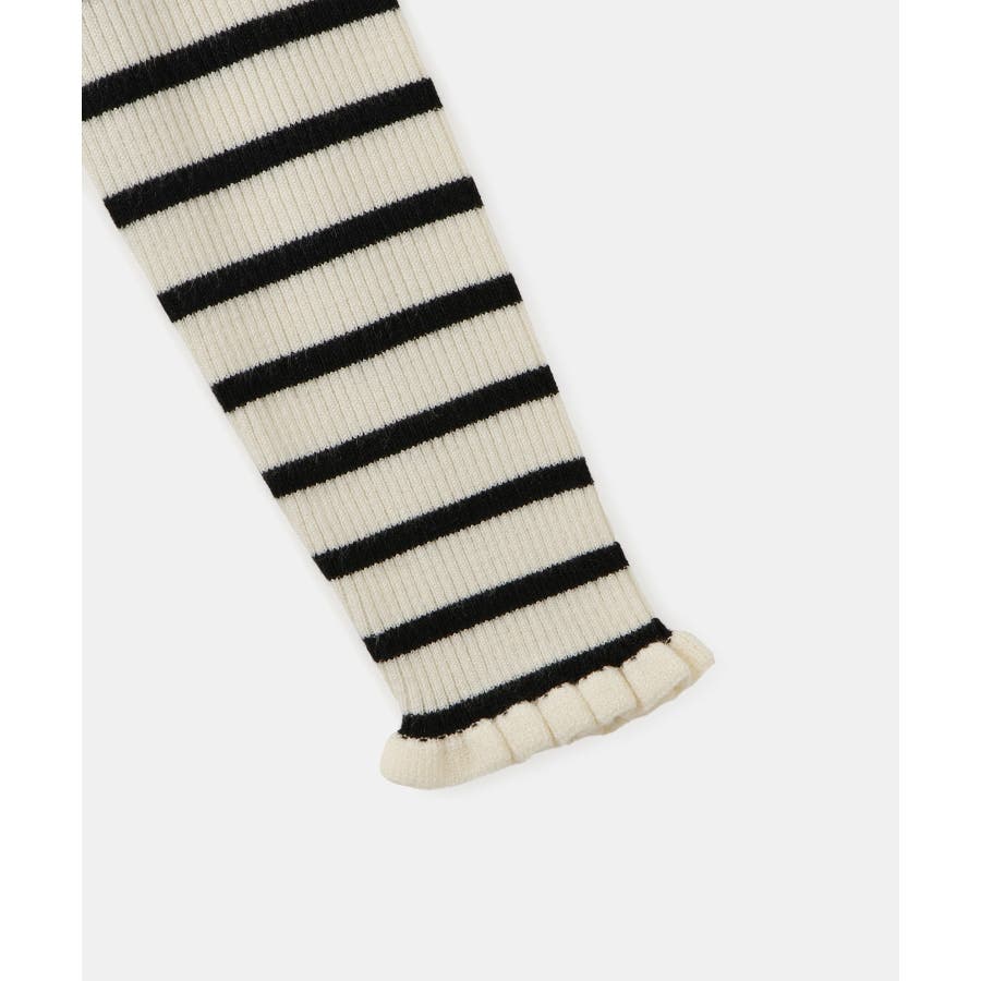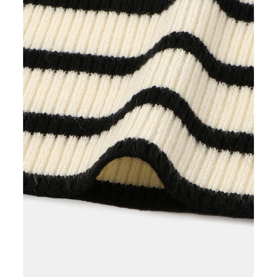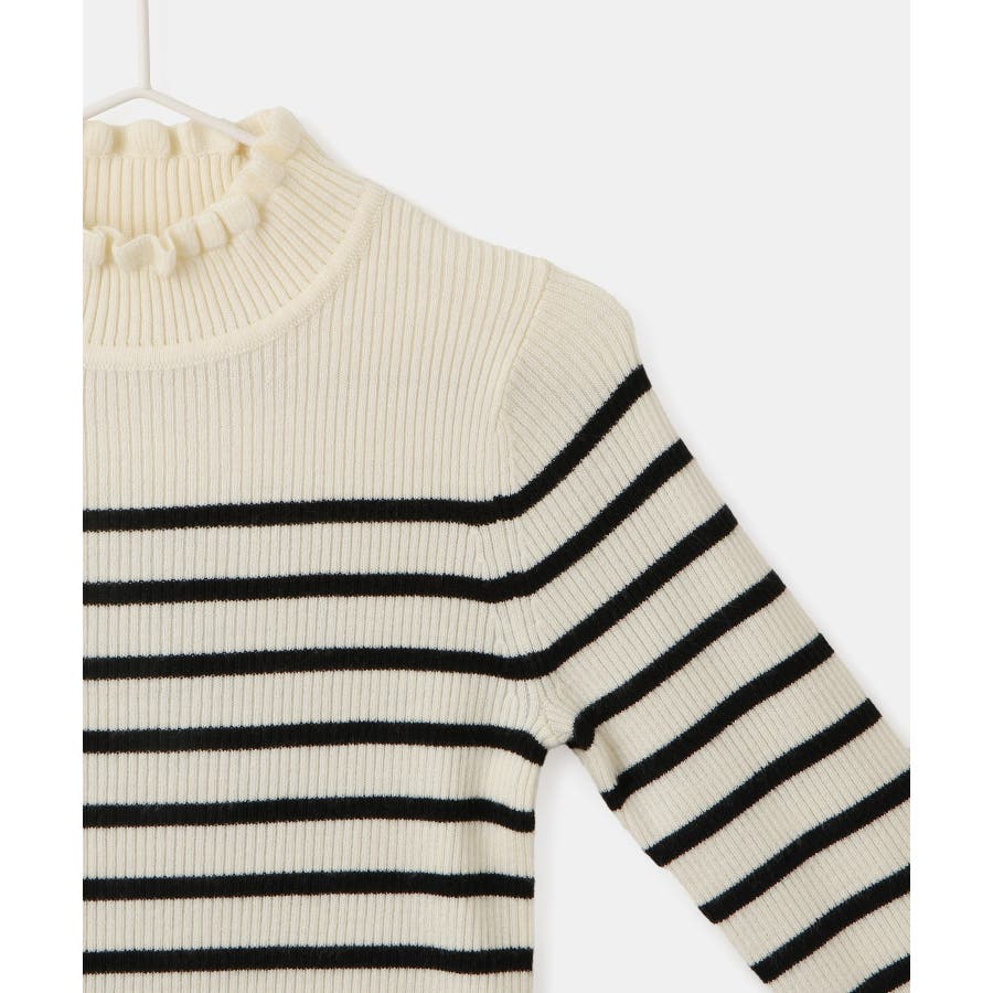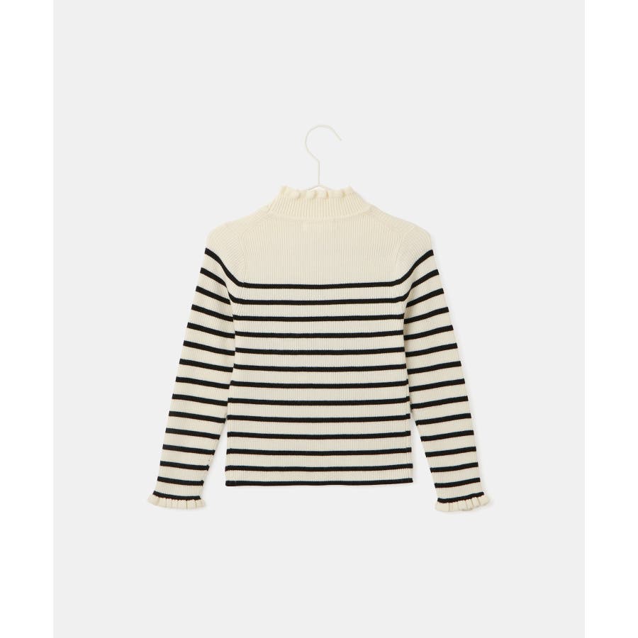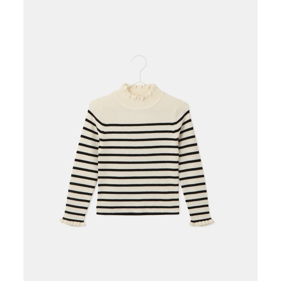 ・ネックラインと袖口のメロウフリルがキュートなアクセントになった、リブ編みのニットプルオーバー。