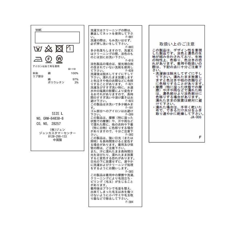 | 素材 | キナリ(16):(本体) 綿 100% (リブ部分) 綿 97% ポリウレタン 3%|サックス(48):(本体) 綿 100% (リブ部分) 綿 97% ポリウレタン 3%|ピンク(63):(本体) 綿 100% (リブ部分) 綿 97% ポリウレタン 3% |