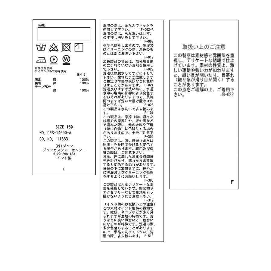 | サイズ | 110 / 120 / 130 / 140 / 150 |