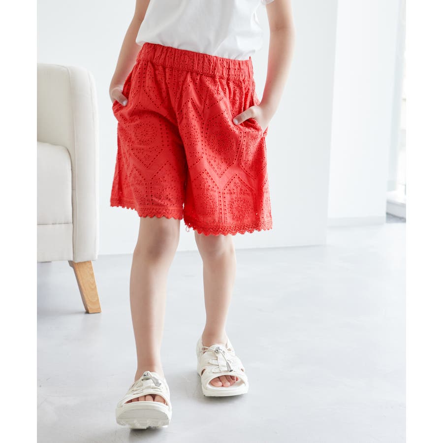 【デザイン・シルエット】 ・総レース素材のショートパンツ。 ・ウエストゴムのイージーな穿き心地で、キッズも着替えがしやすいアイテム。 ・やや広がりがあり、スカートのような見え感。 【カラー】 ・オフホワイト、レッドの明るい2色展開。 【スタイリングポイント】 ・スウィートなパフスリーブのシャツがお似合い。 ・カジュアルなTシャツとも好相性で着こなせる。 ・春や秋には、パーカーやGジャンと合わせて。 ・同シリーズでワンピース(品番:GRE14010)も展開。 ----------------------------- 裏地:あり 透け感:オフホワイト(15)のみややあり 伸縮性:なし 生地感・厚さ:やや薄め ポケット:左右にあり ウエスト:ゴム 季節:春・夏 ----------------------------- ※撮影時の光、お使いのモニター環境によって色の見え方が違う場合がございます。 ※モデル身長、着用サイズは詳細画像をご確認ください。