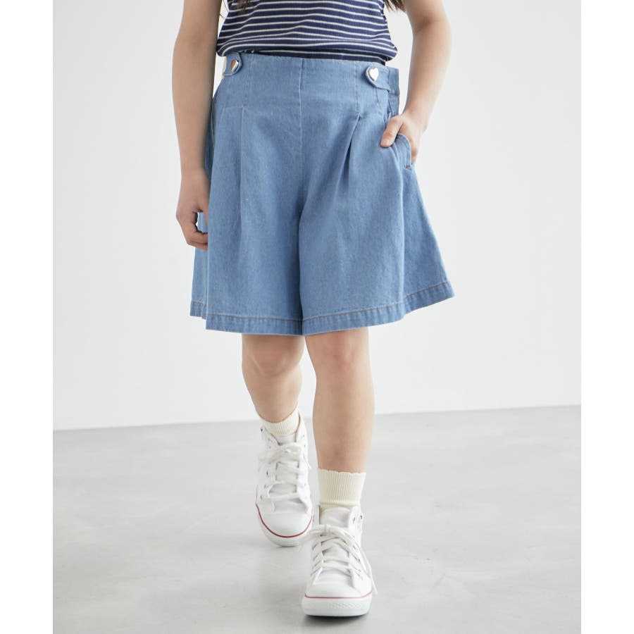 【KIDS】ハートボタンデニムキュロット