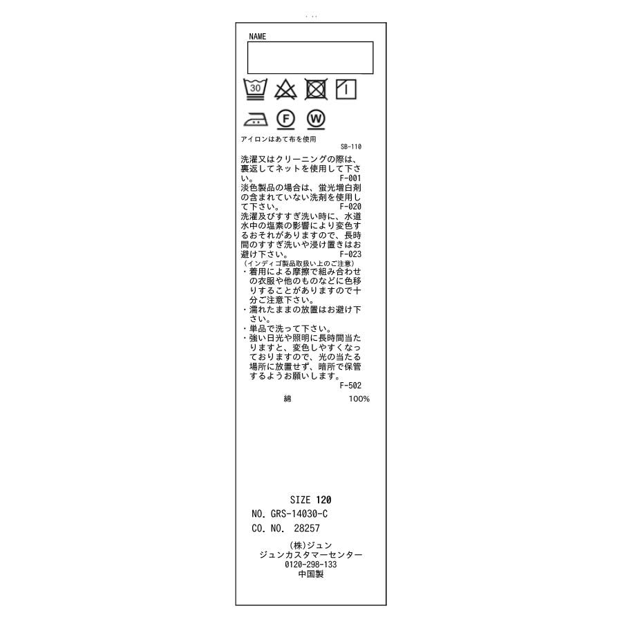 | 素材 | ネイビー(40):綿 100%|サックス(48):綿 100% |