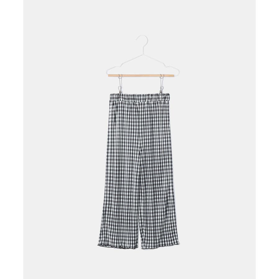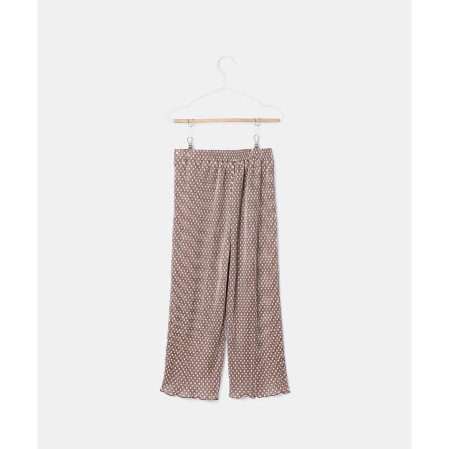 【素材感】 ・夏に着やすいさらりとした素材。 ・少し透け感があるのでインパンツ推奨。 【デザイン・シルエット】 ・細かなプリーツで自然な広がりをもたせたワイドパンツ。 ・ウエストゴムのプルオン仕様で、お着替えも着心地もラクチン。 【スタイリングポイント】 ・プリントTシャツとスニーカーやサンダルでカジュアルにコーディネート。 ・ブラウス合わせなら上品さがアップ。 ----------------------------- 裏地:なし 透け感:ややあり 伸縮性:ややあり 生地感・厚さ:やや薄手 ポケット:なし ウエスト:ゴム 季節:夏・春 ----------------------------- ※撮影時の光、お使いのモニター環境によって色の見え方が違う場合がございます。 ※モデル身長は詳細画像をご確認ください。