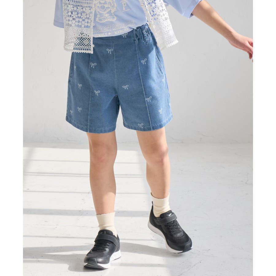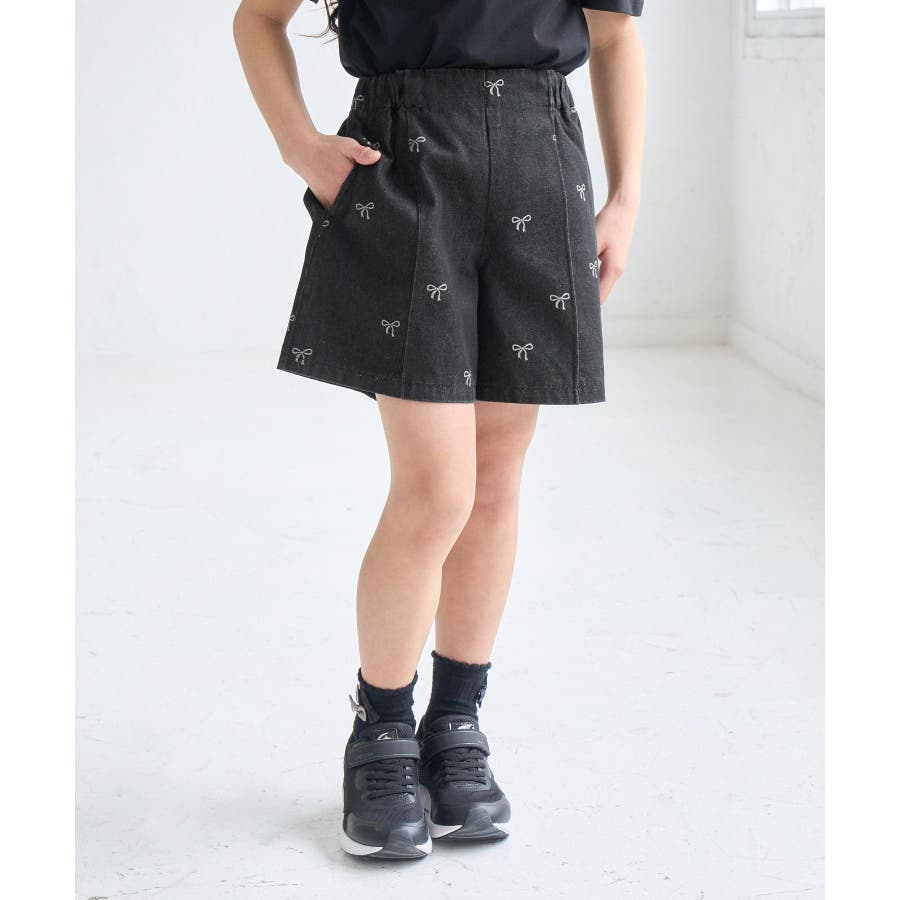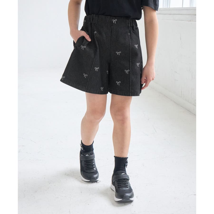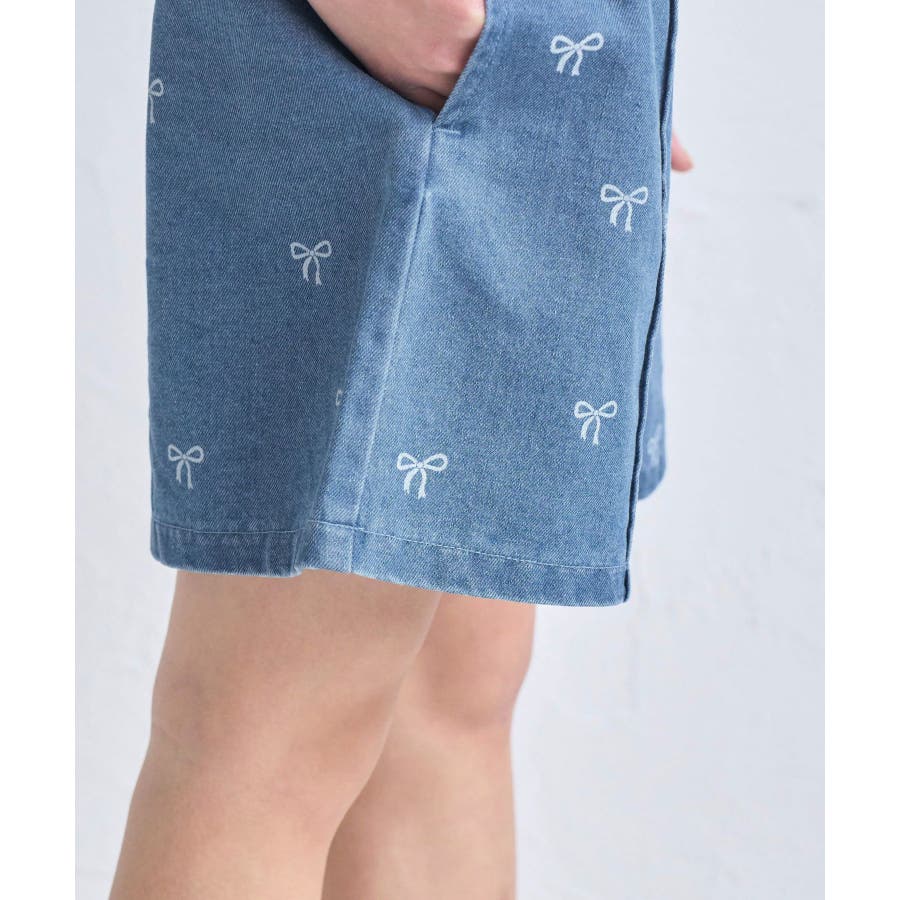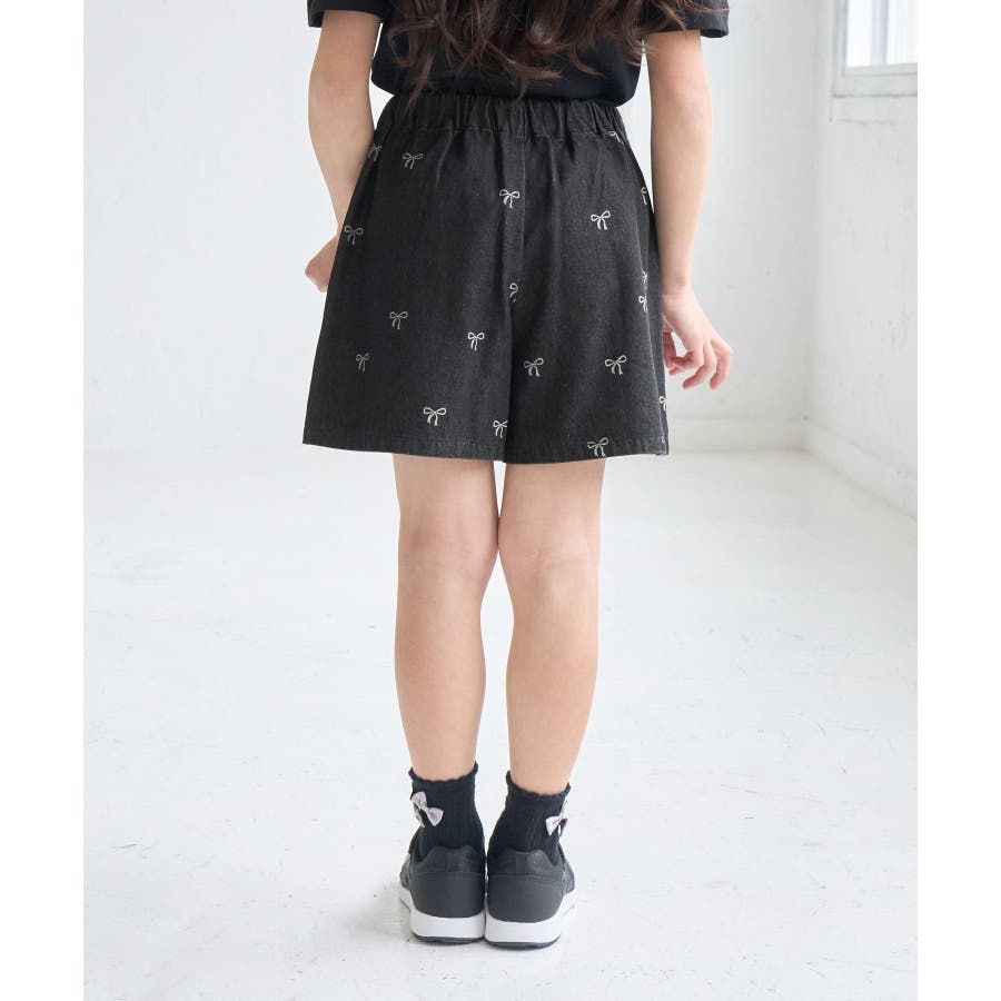 【素材感】 ・厚手すぎず、動きやすさのあるデニム素材。 【デザイン・シルエット】 ・バレエコアをイメージリボン柄がポイント。 ・フロントのピンタックが大人っぽく、すっきりとしたシルエットにこだわった1着。 【カラー】 ・ブラックデニムとブルーデニムの2色展開。 【スタイリングポイント】 ・すっきり見えのシルエットなので、ボリューム感のあるトップス合わせがおすすめ。 Sサイズ:95~115cm Mサイズ:115~135cm Lサイズ:135~155cm ----------------------------- 裏地:なし 透け感:なし 伸縮性:なし 生地感・厚さ:普通 ウエスト:後ろゴム、内側で調整可能 ポケット:あり 季節:春・夏・秋 ----------------------------- ※撮影時の光、お使いのモニター環境によって色の見え方が違う場合がございます。 ※モデル身長:122cm 着用サイズ:M