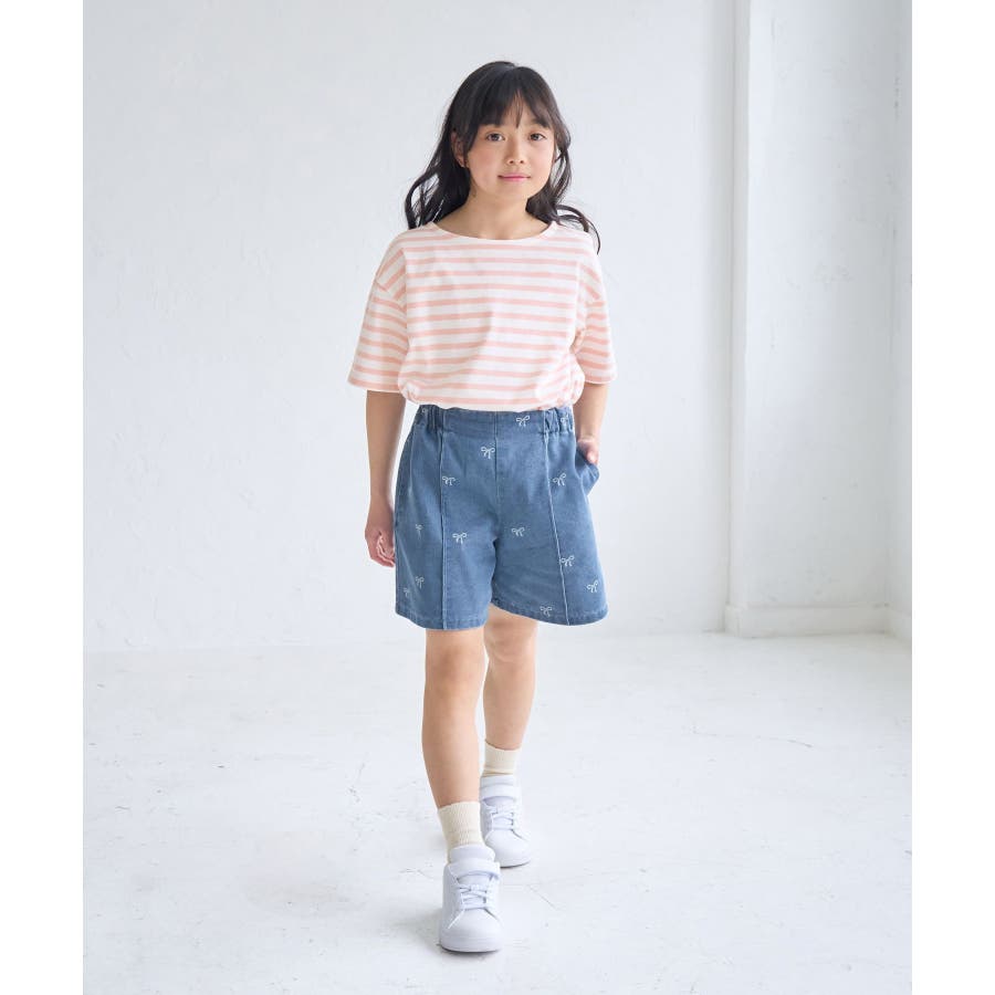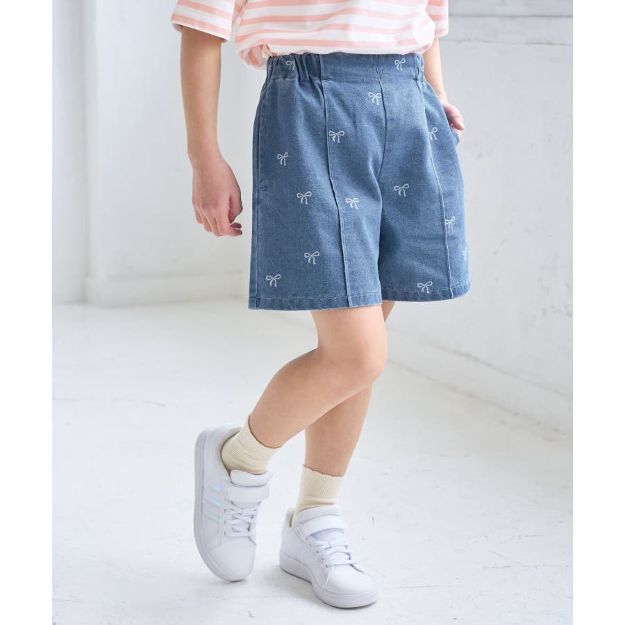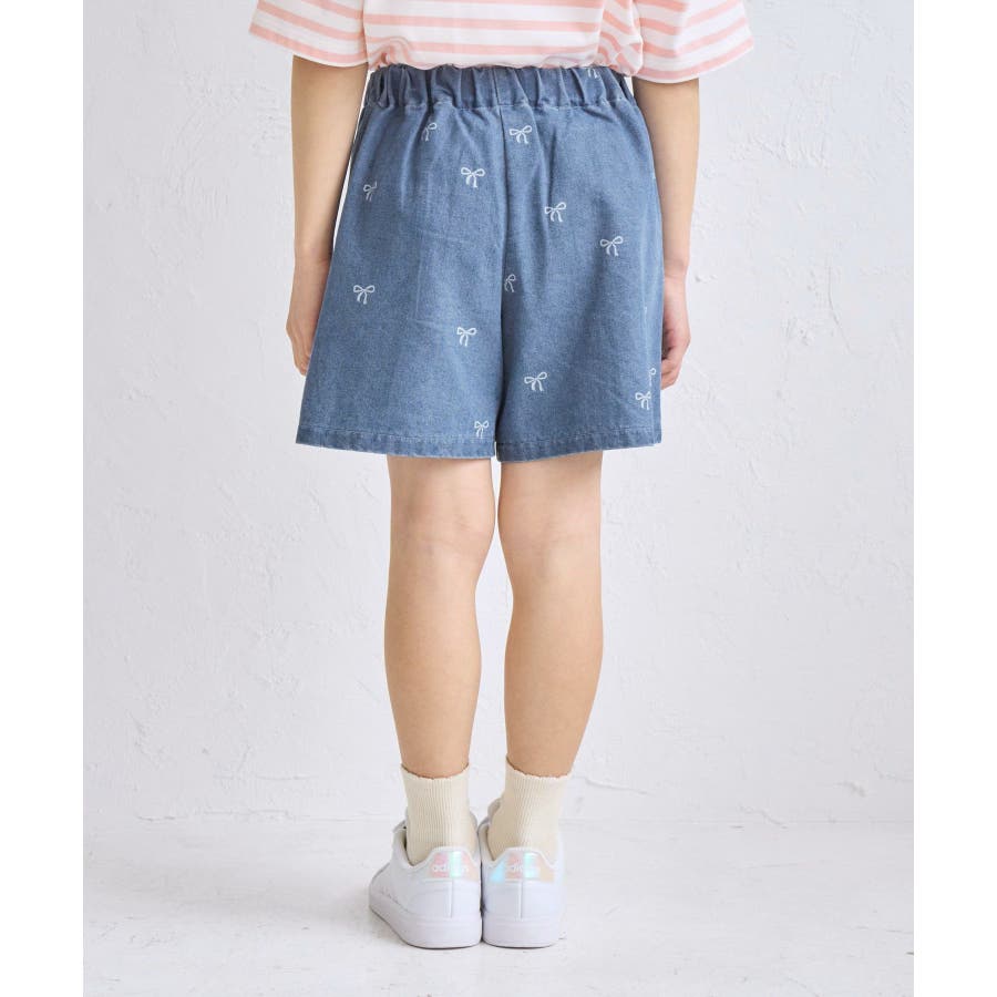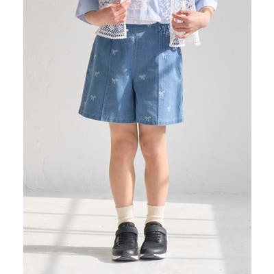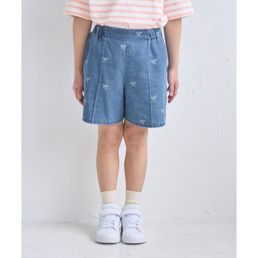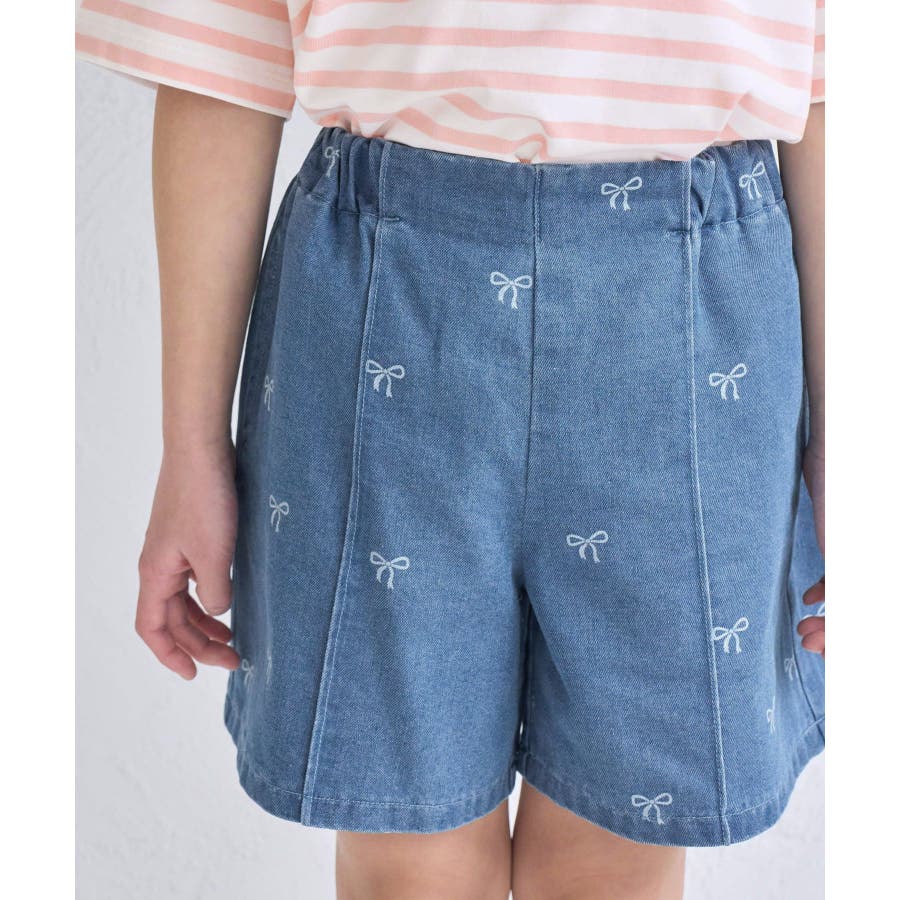 【KIDS/キッズ】リボン柄デニムピンタックパンツ