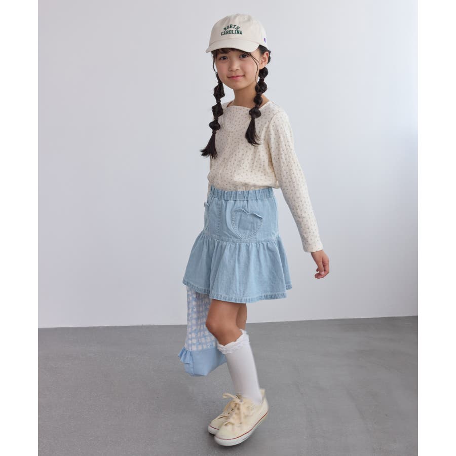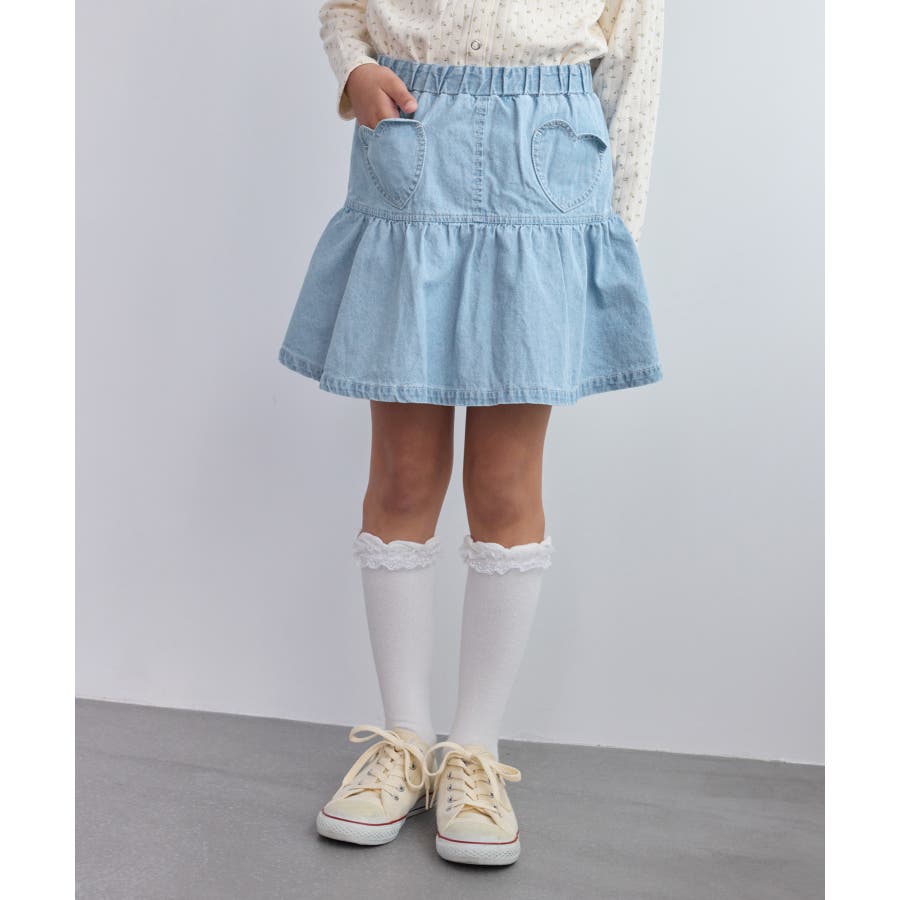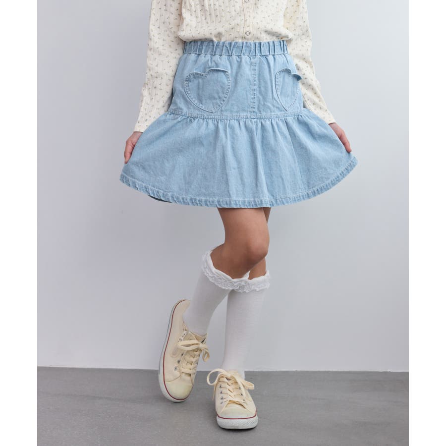 【KIDS/キッズ】インパンツ付きハートポケットデニムスカート