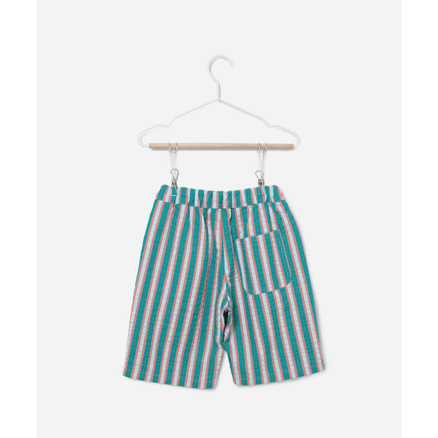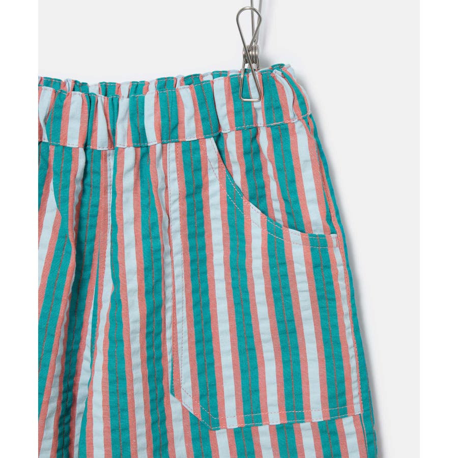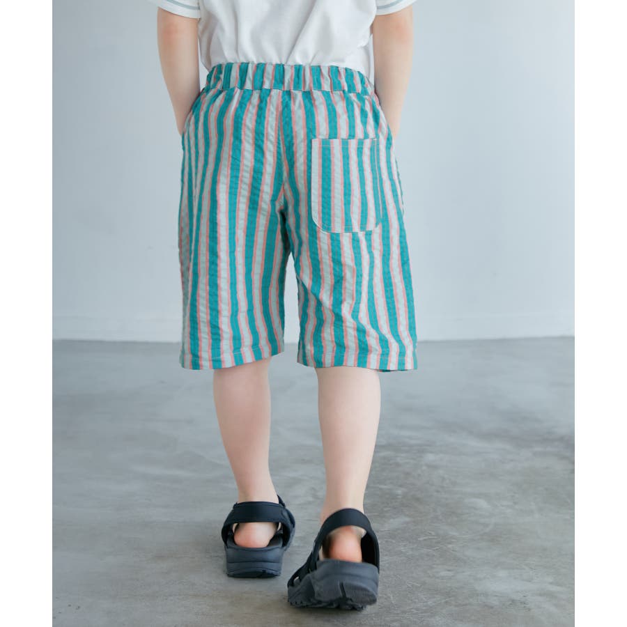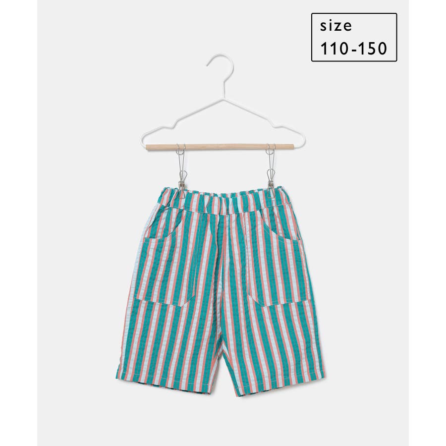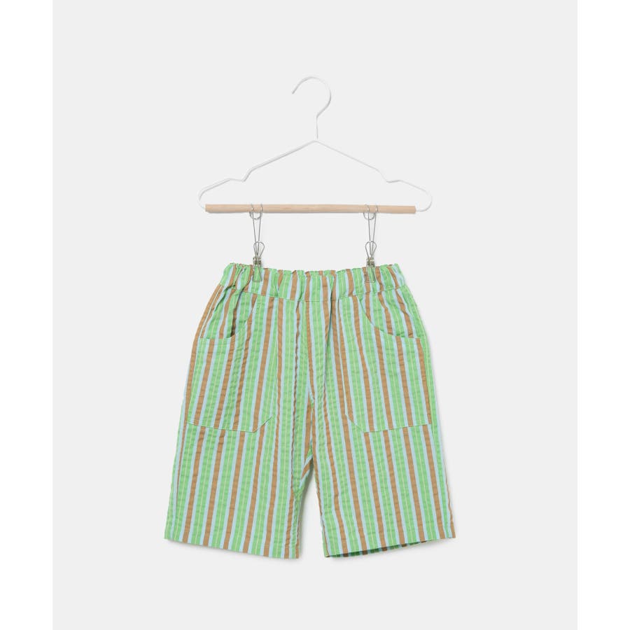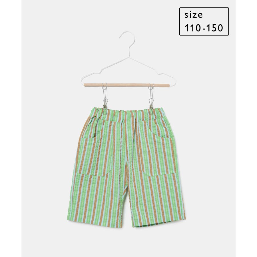 【素材感】 ・夏でも着やすいさらっとした素材感。 【デザイン・シルエット】 ・ビビッドなマルチカラーのストライプ柄ハーフパンツ。 ・畝のあるサッカー生地で涼やかに穿きこなせる。 ・ウエストは総ゴム、左脇にはゴムが入れ替えられるホールも。 ・前後に便利なポケット付き。 ・着脱のしやすいプルオン仕様で、男女兼用可能。 【カラー】 ・ライトグリーン、レッドのエネルギッシュな2色展開。 【スタイリングポイント】 ・デザインプリントTシャツでにぎやかなファッションに挑戦。 ・足もとはスニーカーやスポーツサンダルがお似合い。 ----------------------------- 裏地:なし 透け感:なし 伸縮性:なし 生地感・厚さ:やや薄手 ポケット:左右、後ろ1個あり ウエスト:ゴム 季節:春夏 ----------------------------- ※撮影時の光、お使いのモニター環境によって色の見え方が違う場合がございます。 ※モデル身長、着用サイズは詳細画像をご確認ください。