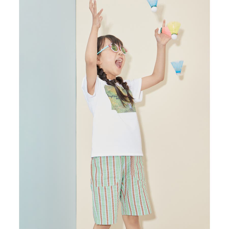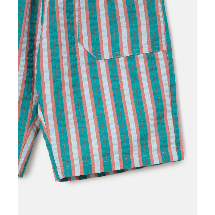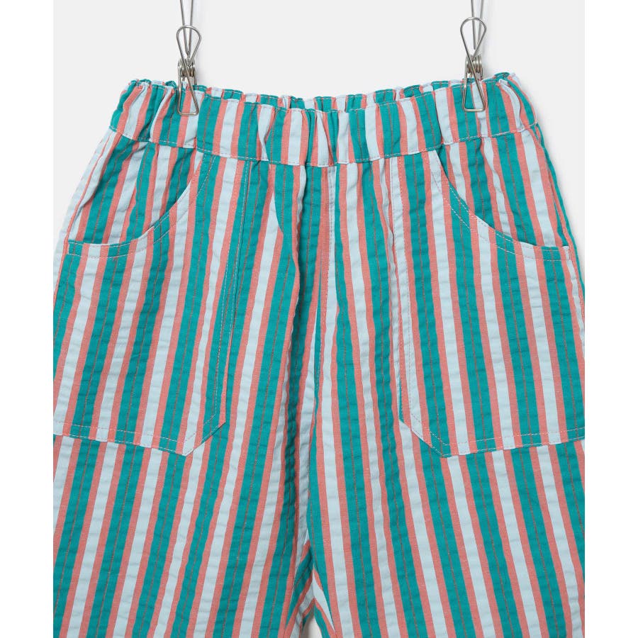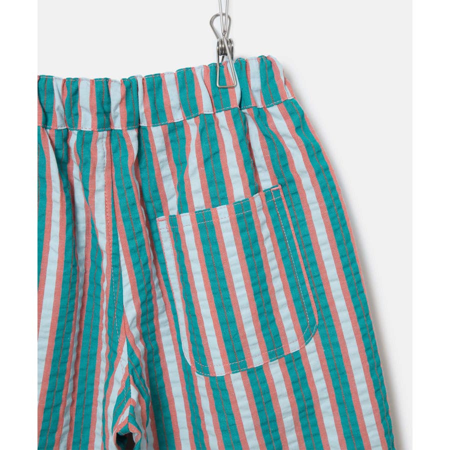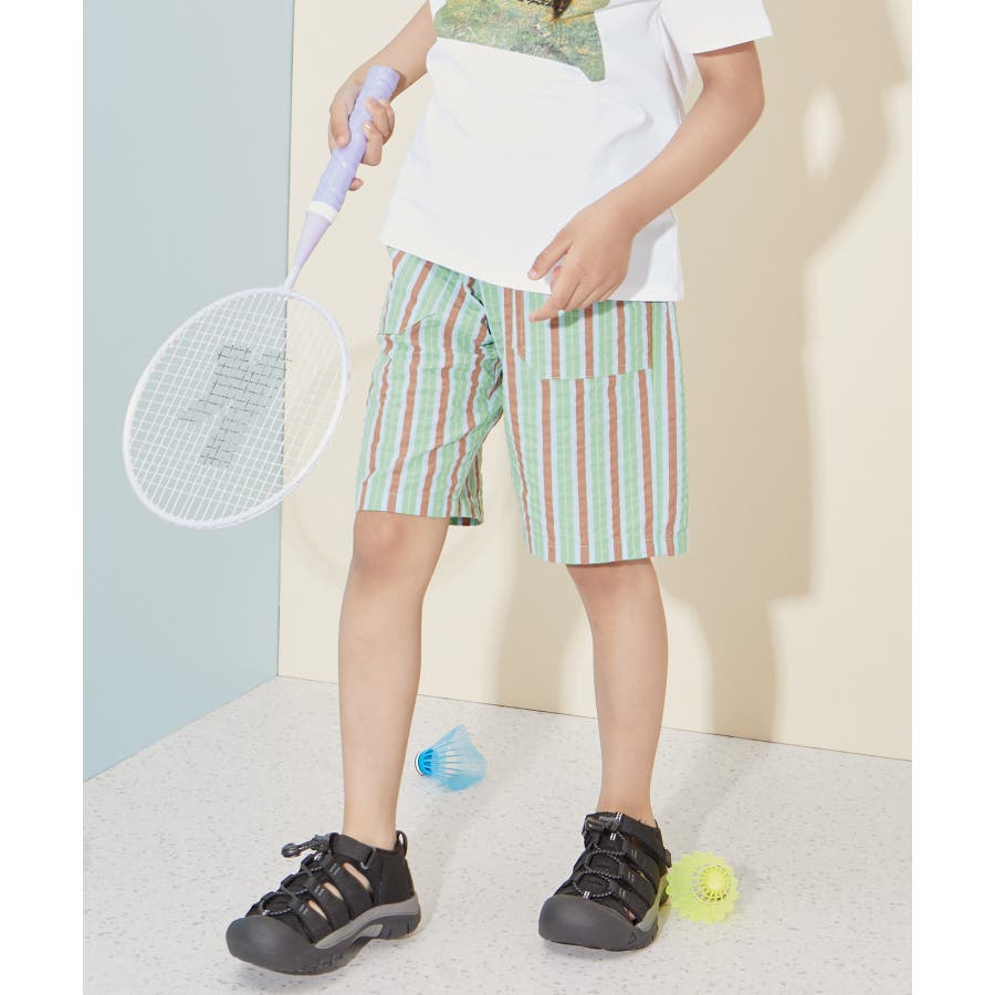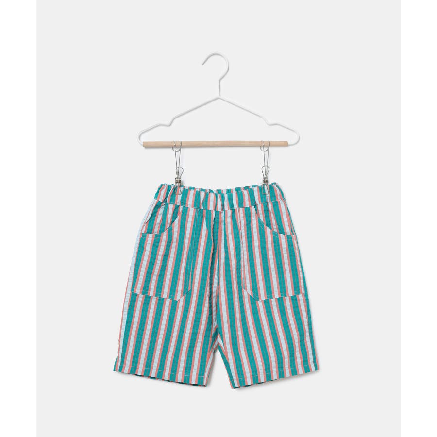【素材感】 ・夏でも着やすいさらっとした素材感。 【デザイン・シルエット】 ・ビビッドなマルチカラーのストライプ柄ハーフパンツ。 ・畝のあるサッカー生地で涼やかに穿きこなせる。 ・ウエストは総ゴム、左脇にはゴムが入れ替えられるホールも。 ・前後に便利なポケット付き。 ・着脱のしやすいプルオン仕様で、男女兼用可能。 【カラー】 ・ライトグリーン、レッドのエネルギッシュな2色展開。 【スタイリングポイント】 ・デザインプリントTシャツでにぎやかなファッションに挑戦。 ・足もとはスニーカーやスポーツサンダルがお似合い。 ----------------------------- 裏地:なし 透け感:なし 伸縮性:なし 生地感・厚さ:やや薄手 ポケット:左右、後ろ1個あり ウエスト:ゴム 季節:春夏 ----------------------------- ※撮影時の光、お使いのモニター環境によって色の見え方が違う場合がございます。 ※モデル身長、着用サイズは詳細画像をご確認ください。