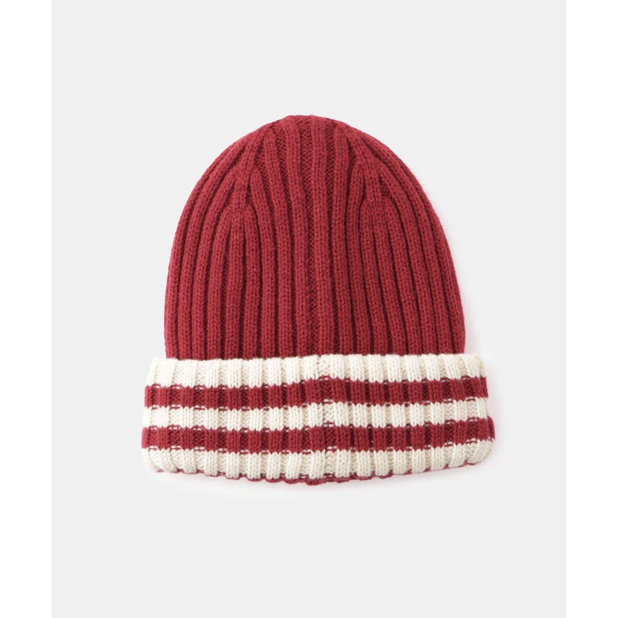 【デザイン・シルエット】 ・ノスタルジックな雰囲気のボーダー柄ニットワッチ。 ・ボリュームたっぷりな太リブ編み。 ・帽体はソリッドカラーに、折り返しをボーダーにして、コントラストを出したのがポイント。 ・男女兼用OK。 【カラー】 ・ネイビー、レッドの2色展開。 【スタイリングポイント】 ・デイリーユースのスウェットシャツやフーディーと相性抜群。 ・トラッドなチルデンセーターに合わせるのもおすすめ。