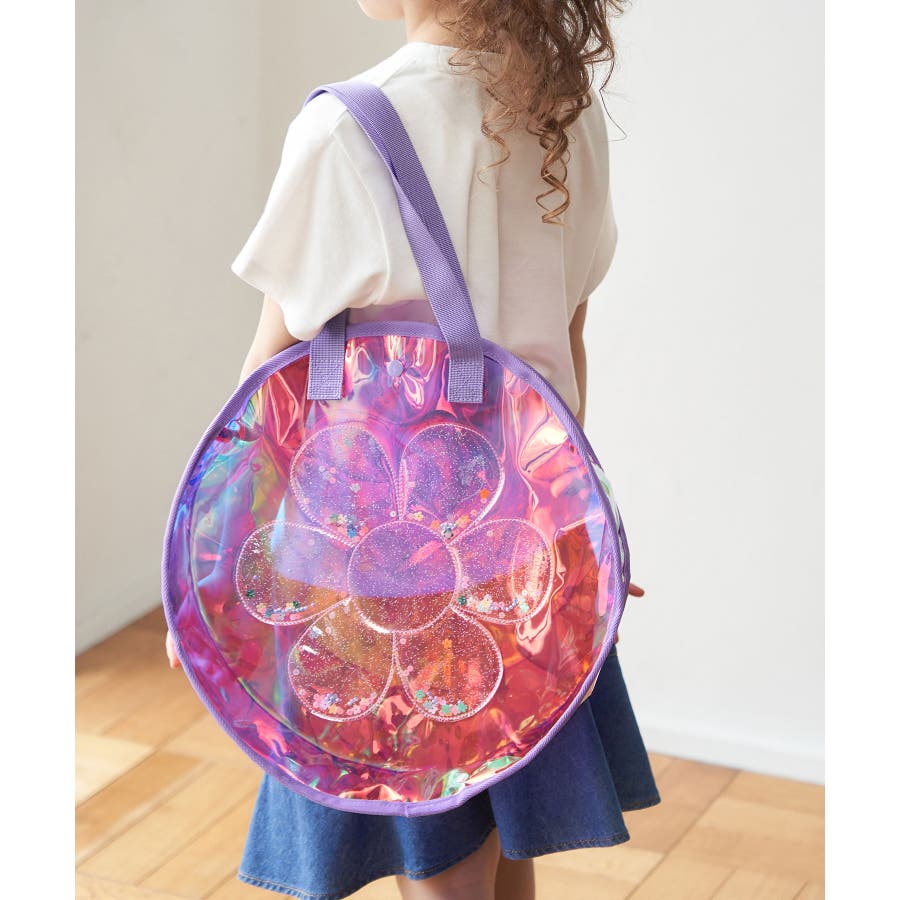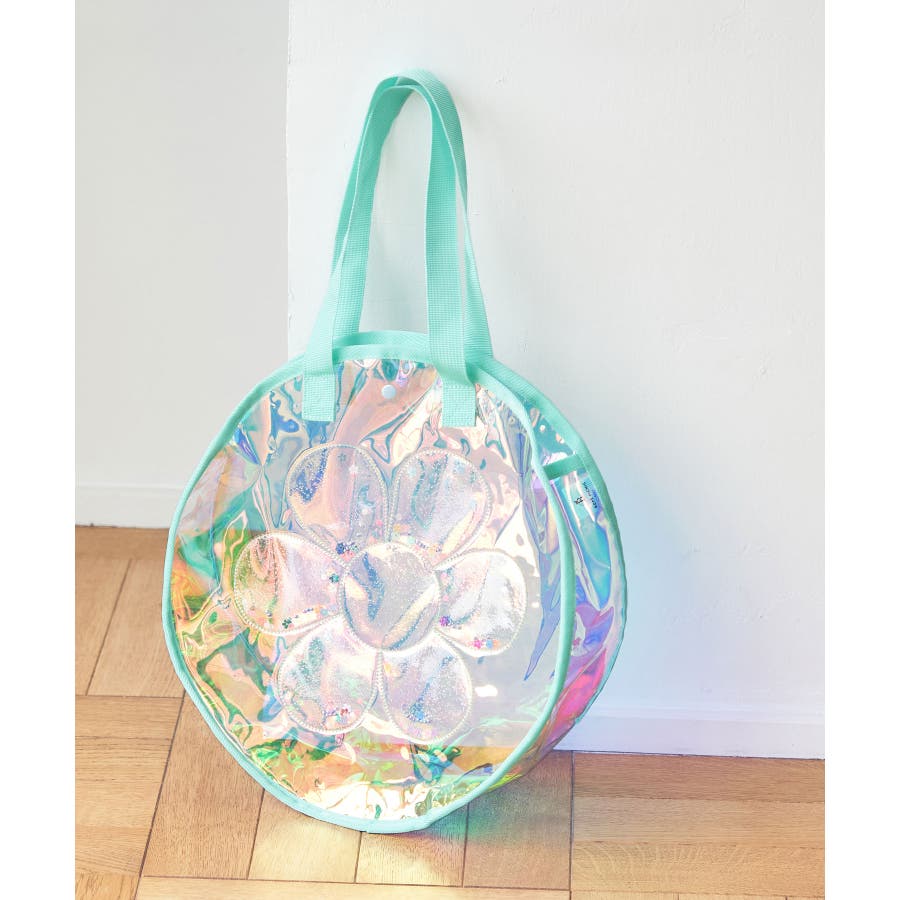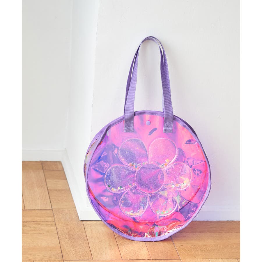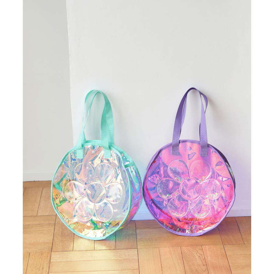 【デザイン・シルエット】 ・オーロラカラーが可愛らしい、サークル型のプールバッグ。 ・フラワーのパッチワークでガーリームード満点に。 【カラー】 ・ブルー、ラベンダーの2色展開。 ----------------------------- ポケットの数:なし ----------------------------- ※撮影時の光、お使いのモニター環境によって色の見え方が違う場合がございます。