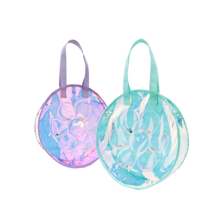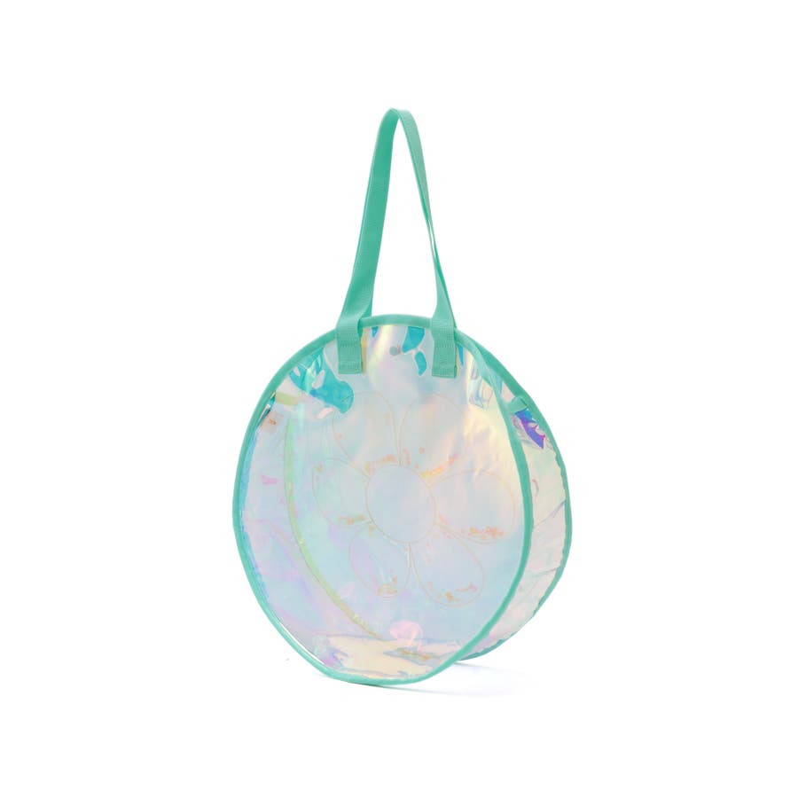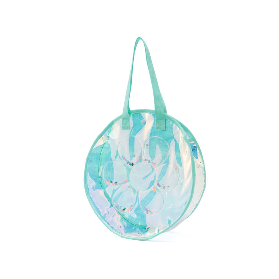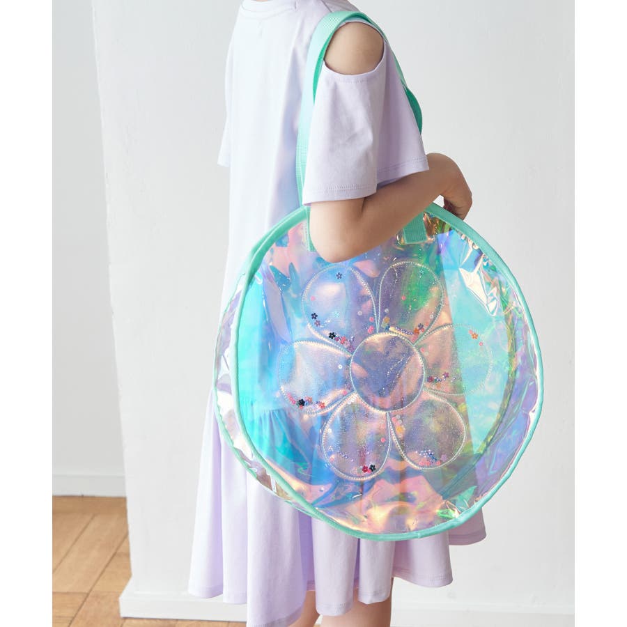 【デザイン・シルエット】 ・オーロラカラーが可愛らしい、サークル型のプールバッグ。 ・フラワーのパッチワークでガーリームード満点に。 【カラー】 ・ブルー、ラベンダーの2色展開。 ----------------------------- ポケットの数:なし ----------------------------- ※撮影時の光、お使いのモニター環境によって色の見え方が違う場合がございます。