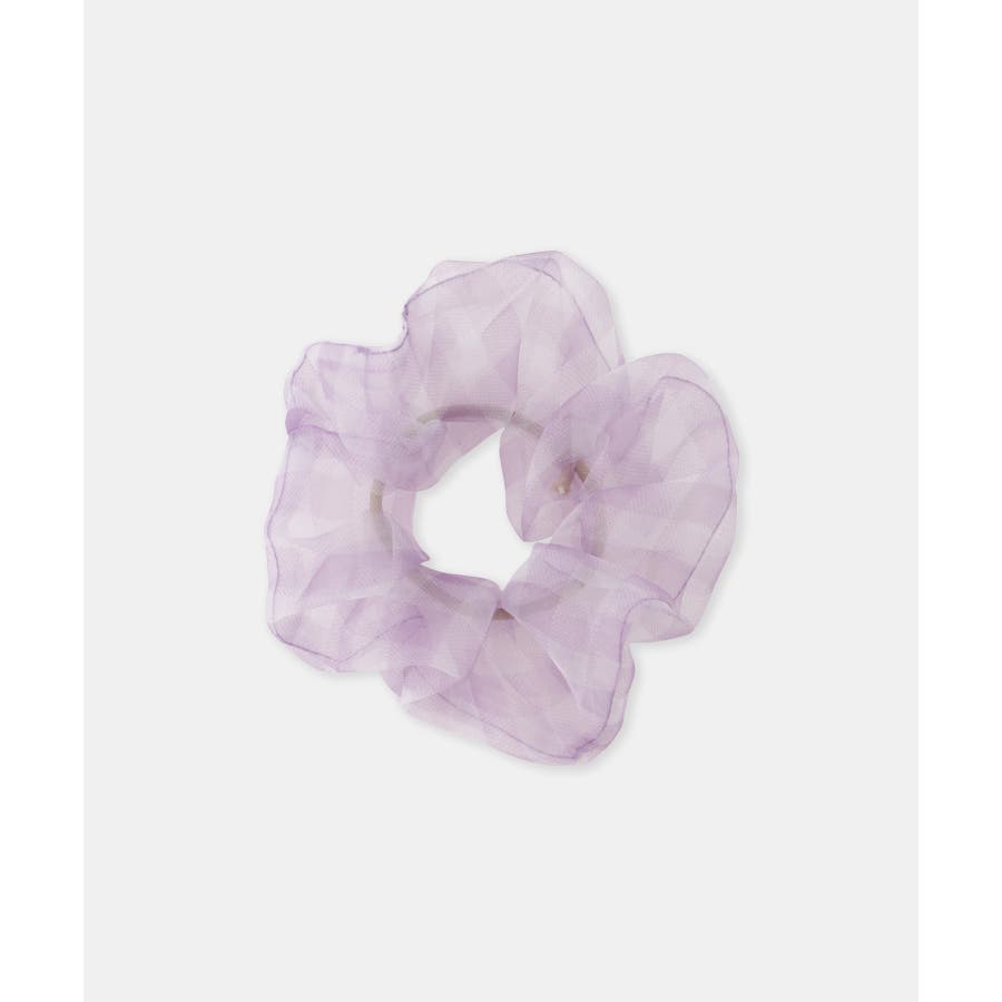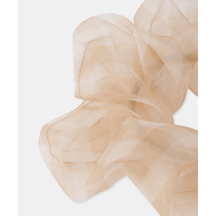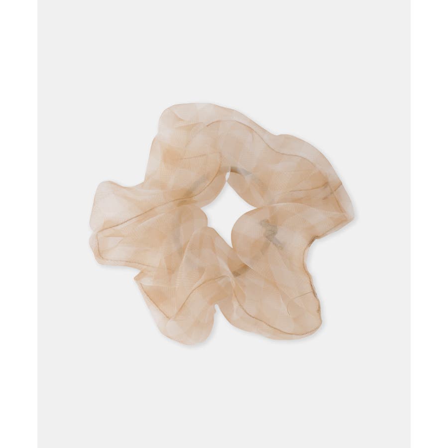 ・ギンガムチェック柄のシュシュは、夏らしいシアーな素材を採用。