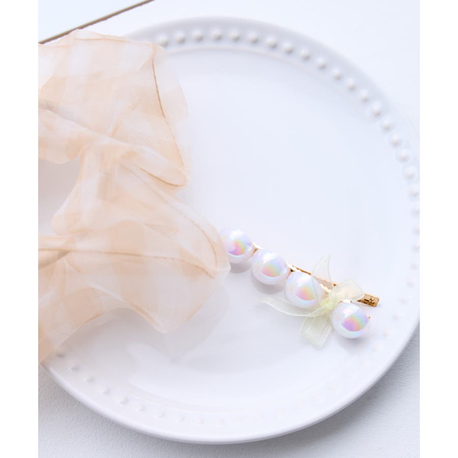 ・ヘアピンは、大粒のオーロラビーズを並べた華やかなデザイン。