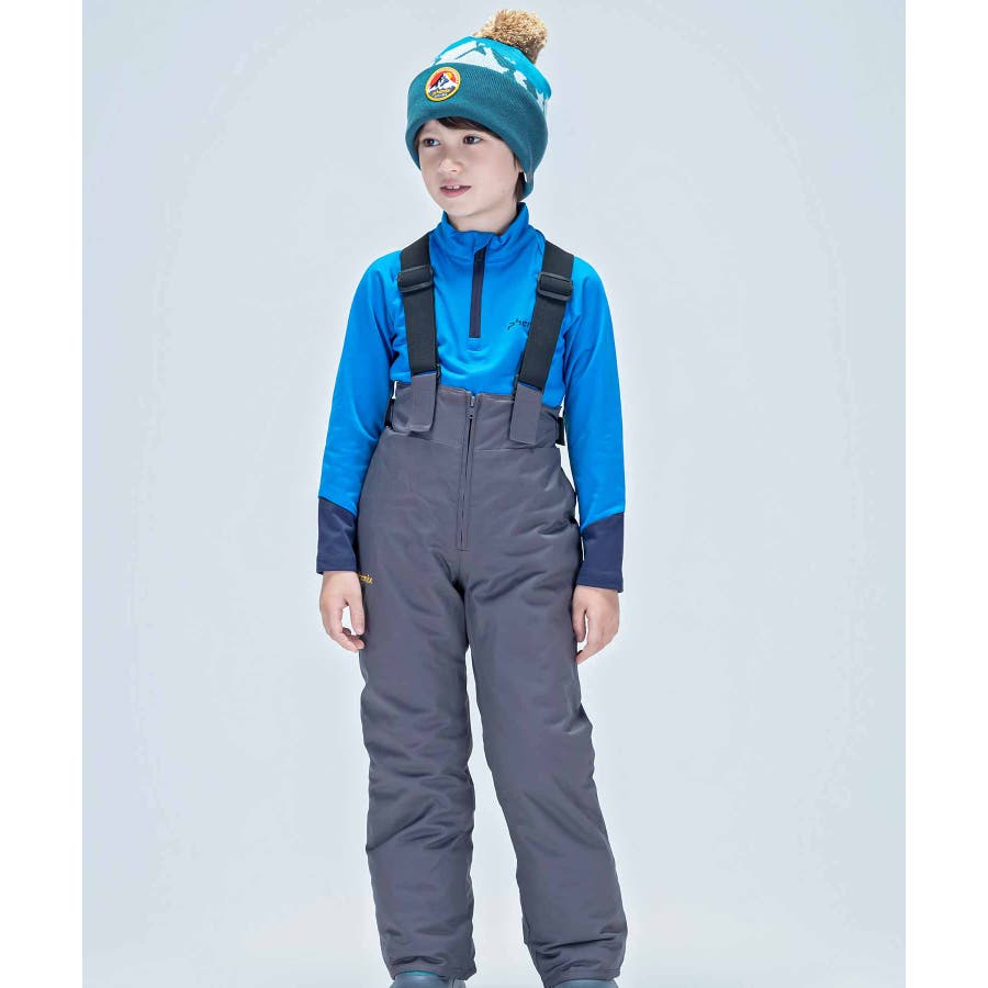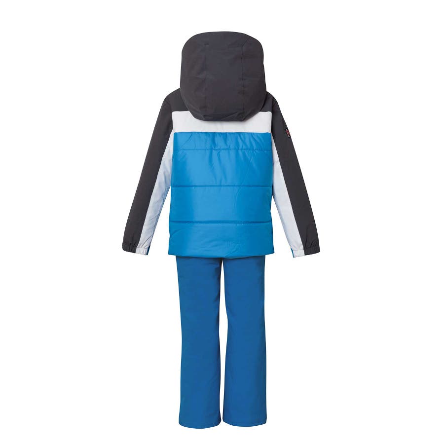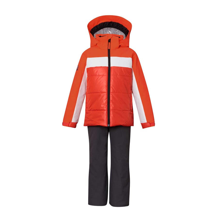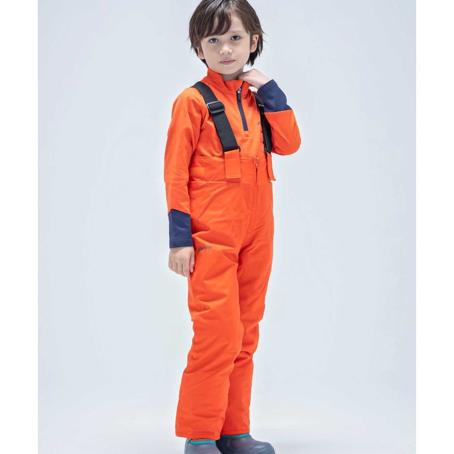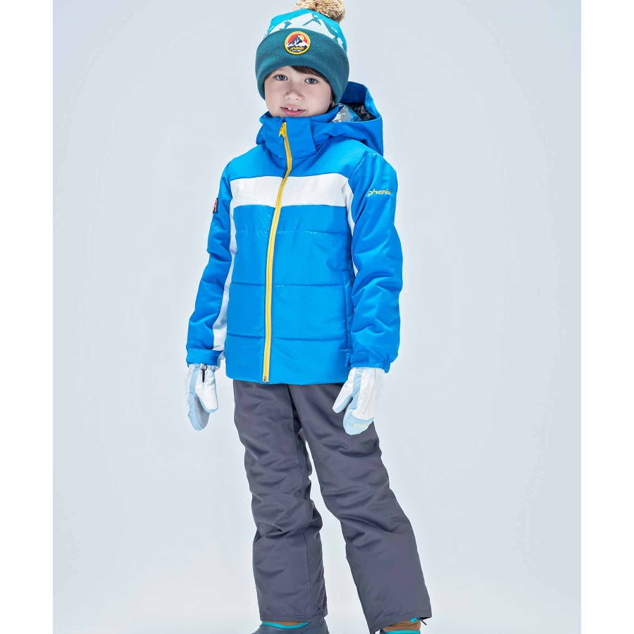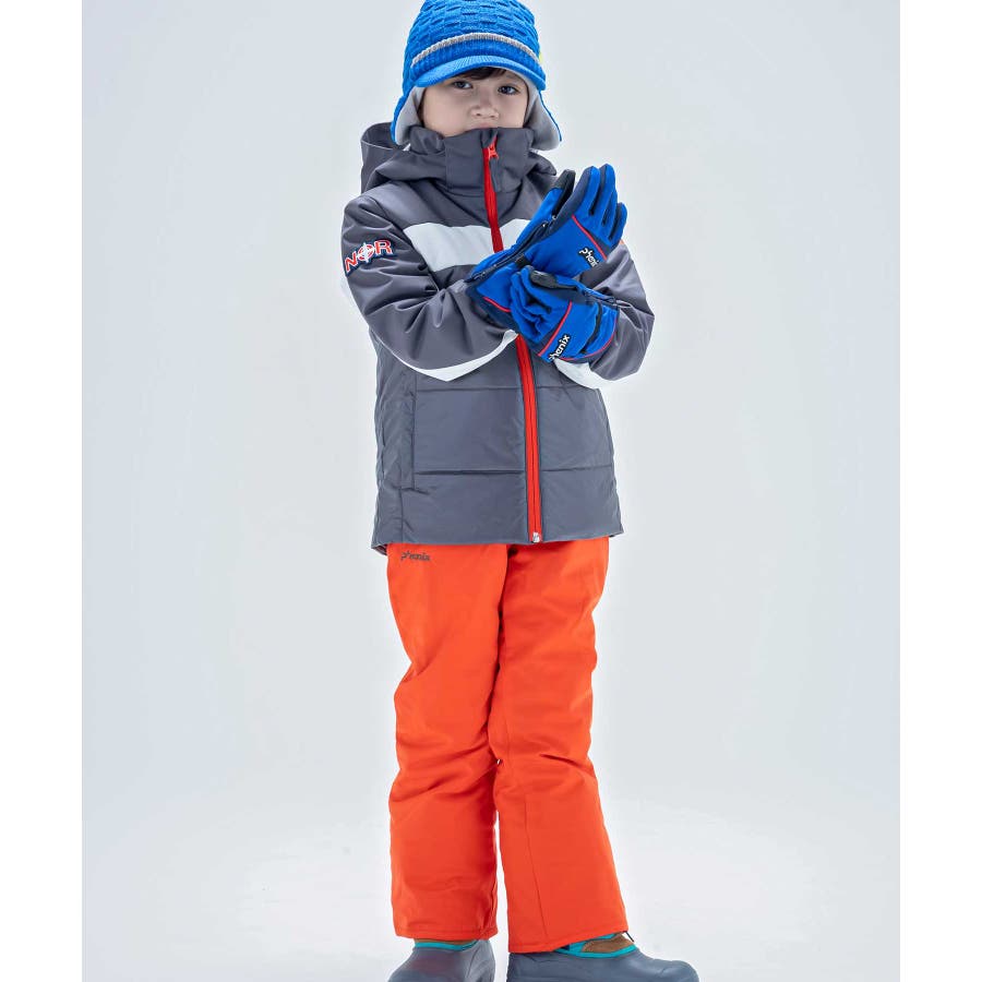 キルティングコンビネーションデザインのジュニア用の2ピースウェア。耐水圧10000mmの2WAYストレッチ生地を使用。袖丈、股下の長さが調整できるスクスク機能付き。