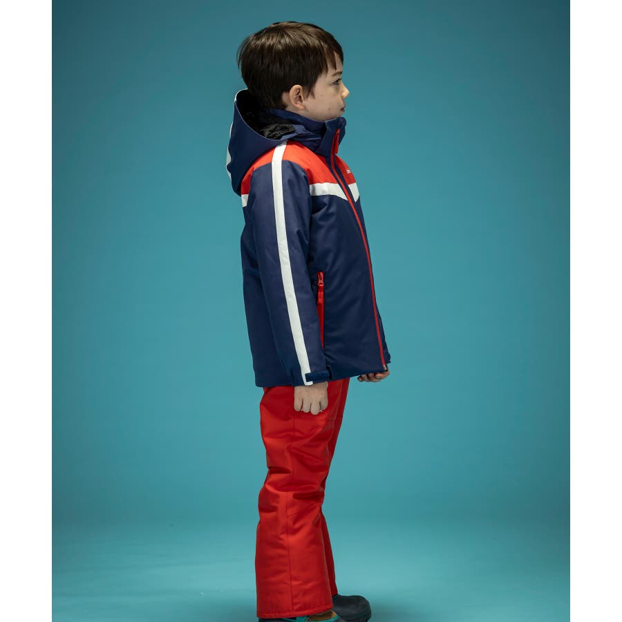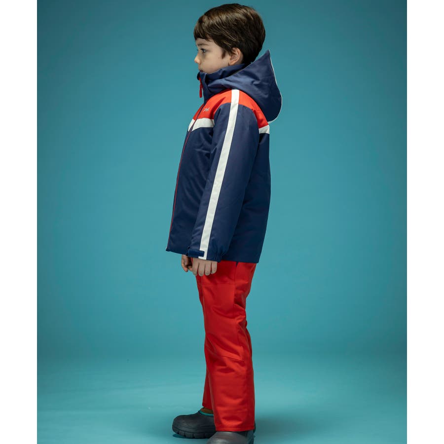トリコロールカラーのコントラスト切り替えが、雪山で一際目立つスタイリッシュなデザインとなっており、元気いっぱいの子供たちにぴったりの遊び心を感じさせます。