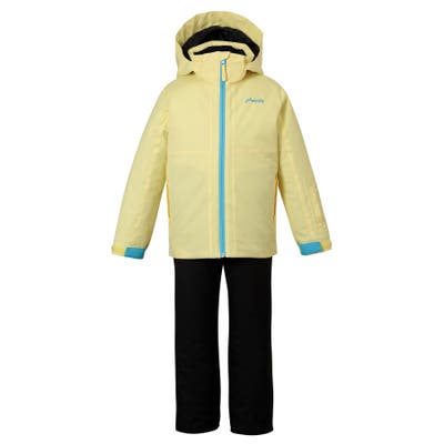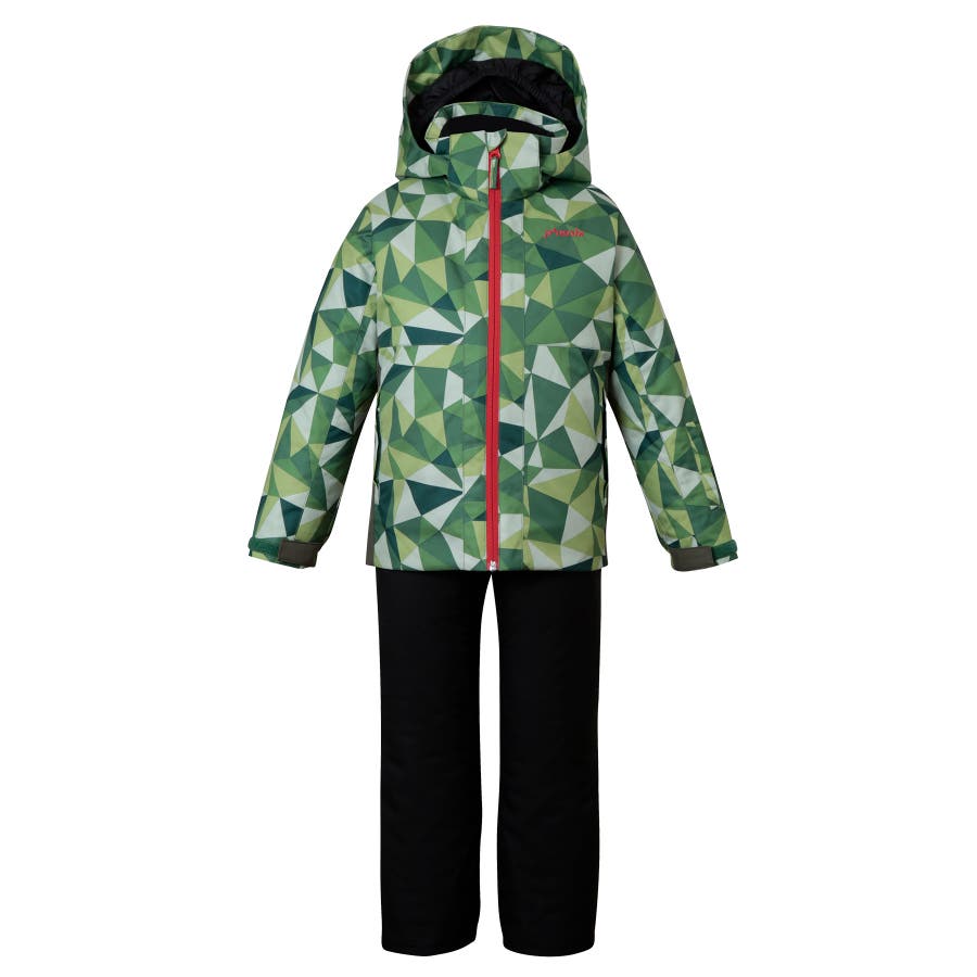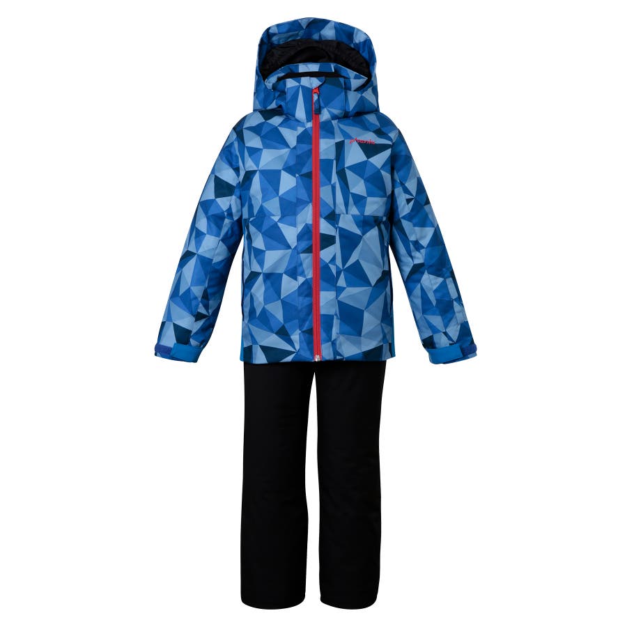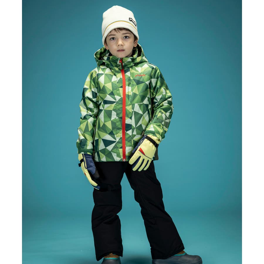 「プレーイングインザスノー ジュニアツーピース」は、シンプルでベーシックなシルエットに、色や柄を効かせた遊び心のあるデザインが特徴のスキーウェア上下セットです。