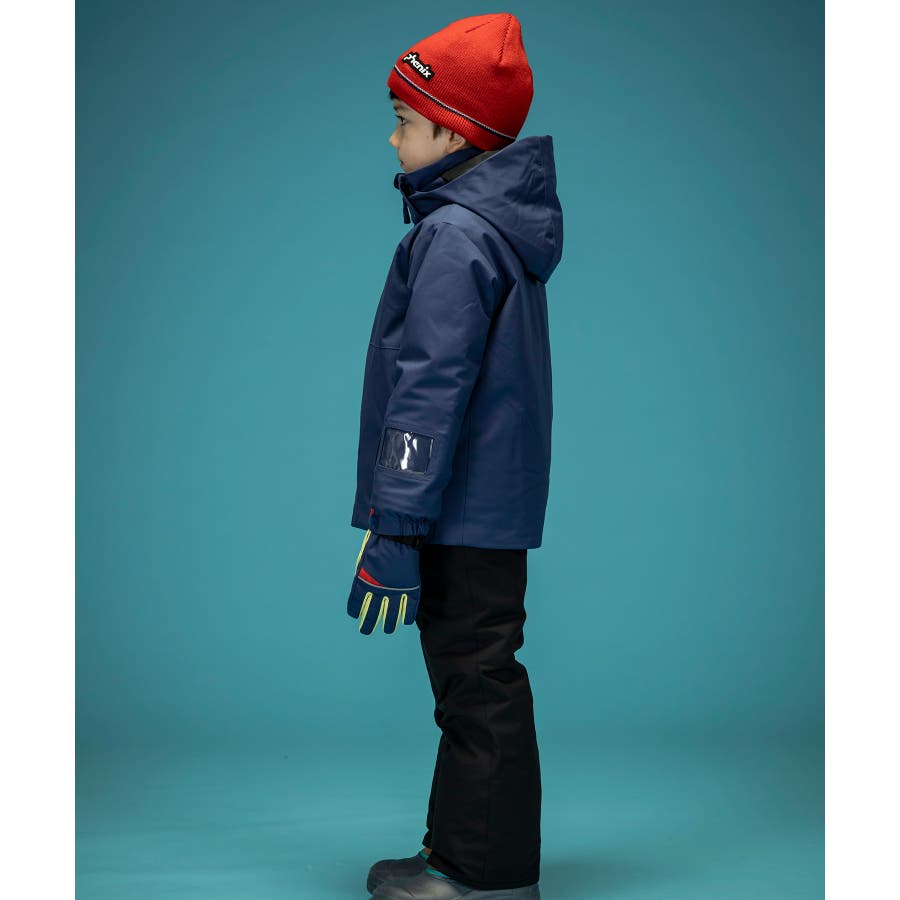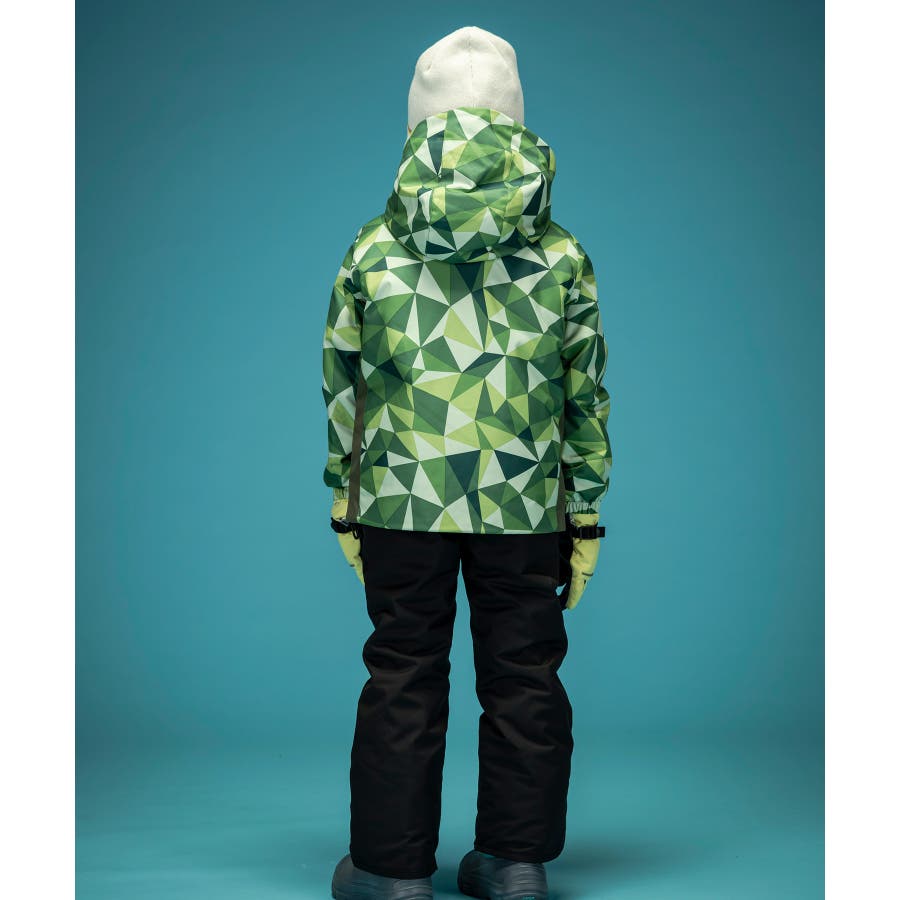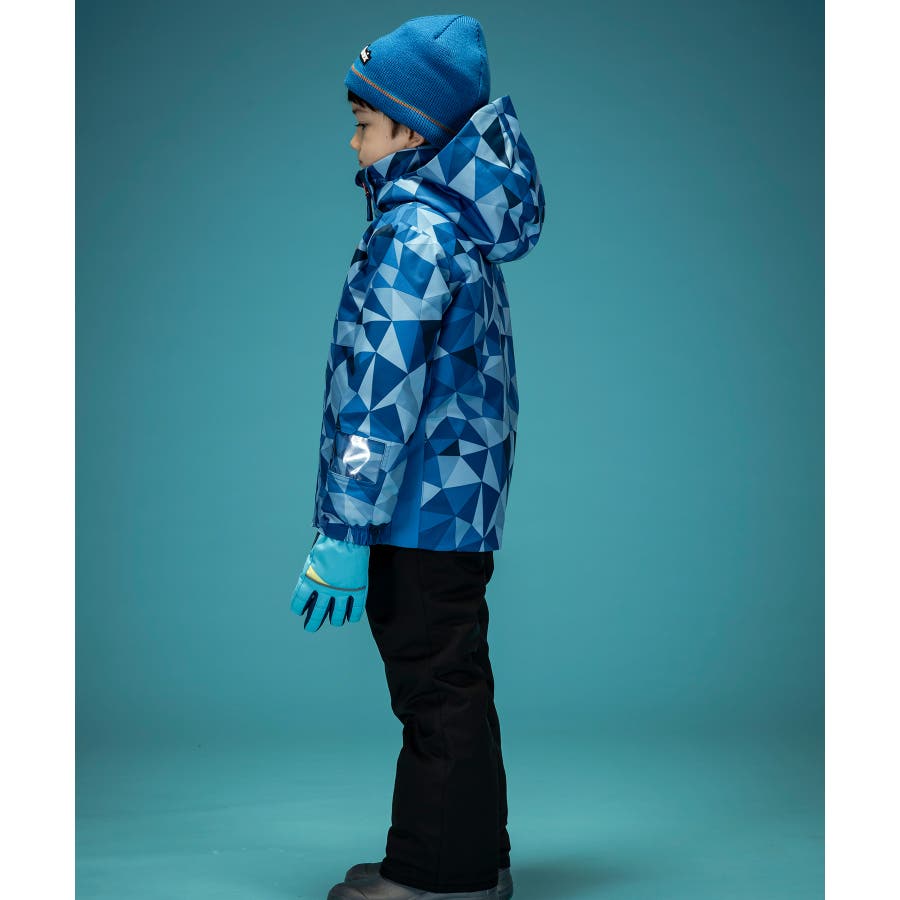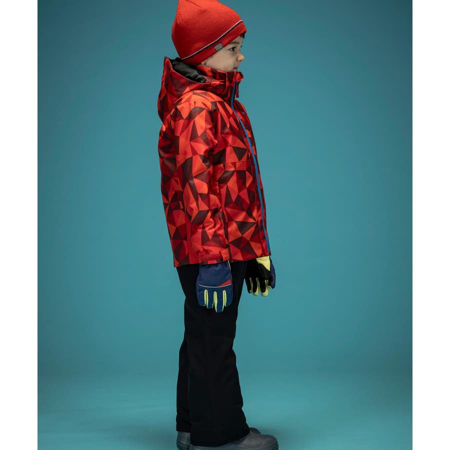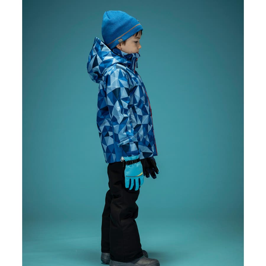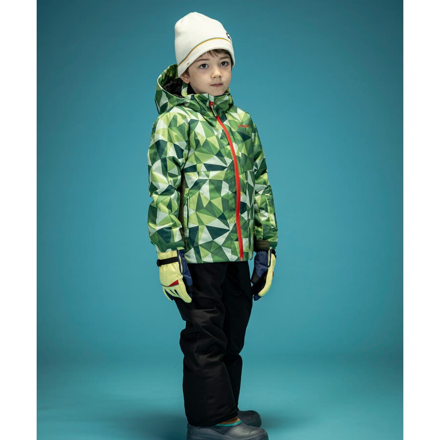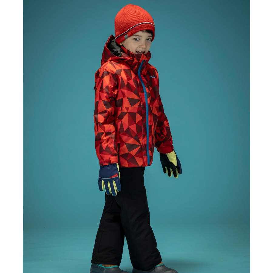 個性的な配色やパターンが、雪山でもお子様を鮮やかに際立たせます。