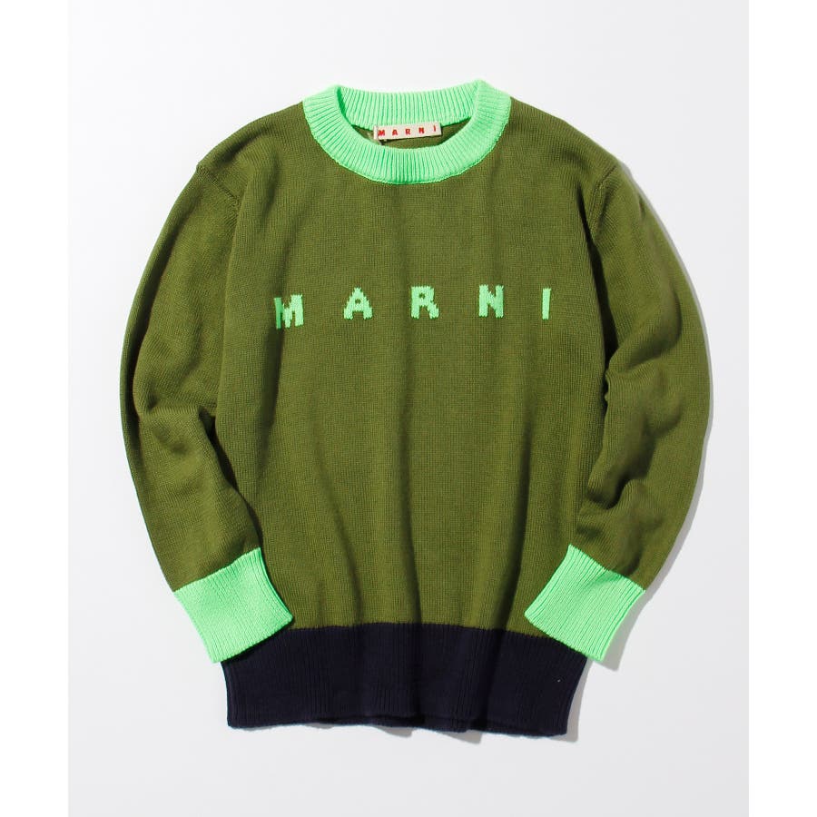 【グリーン】MARNI マルニ ブランドロゴ長袖ニットセーター