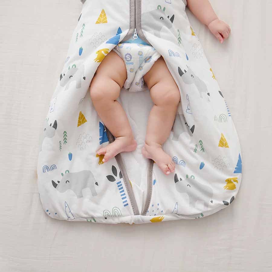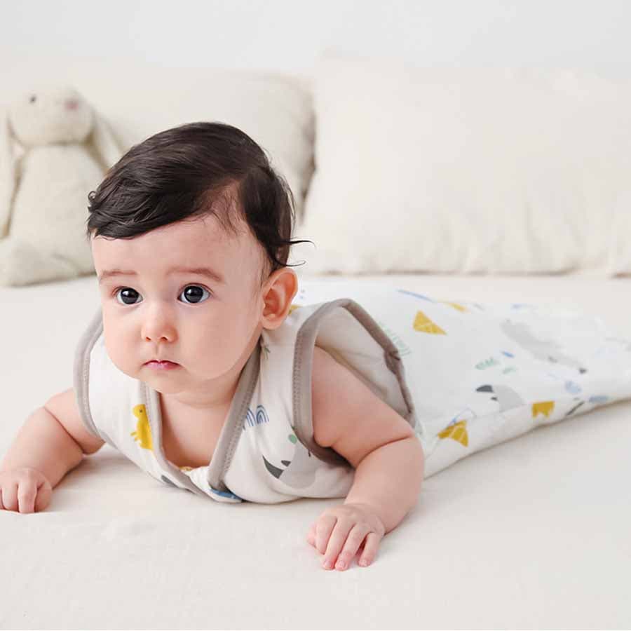 お布団を蹴って、めくれる心配もない、そんな寝返りが激しい赤ちゃんにも安心。
