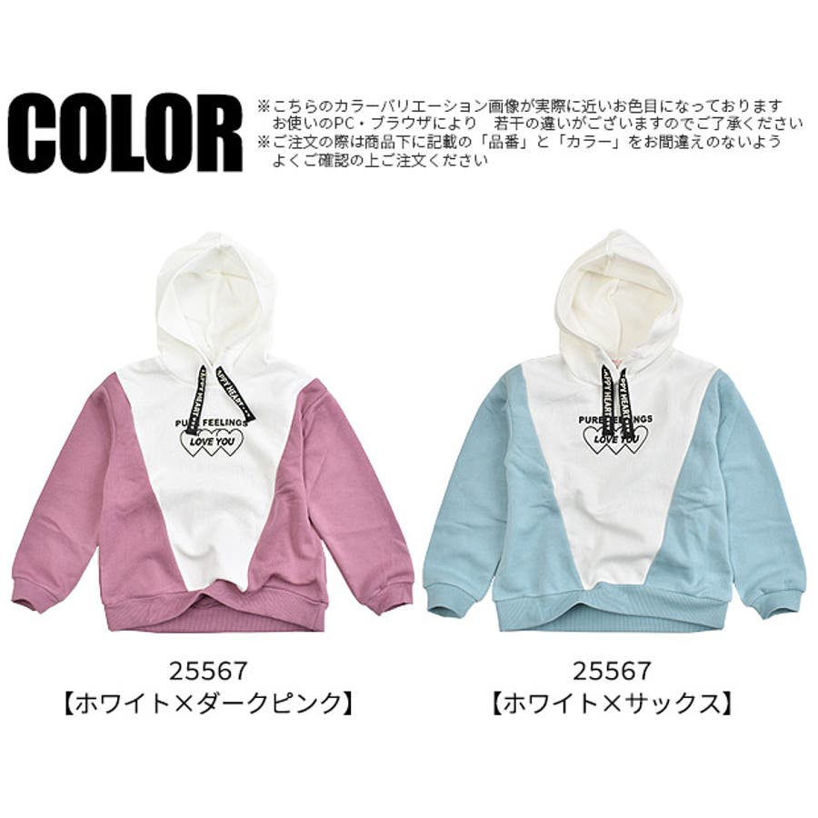 POPS LEMON 裏起毛 パーカー プリント トレーナー キッズ 女の子 110cm 120cm 130cm トップス キッズ 子供服 あったか あったかい ダークピンク サックス ブルー かわいい 長袖 スウェット スエット パーカー プルオーバー プルパーカー パーカー フード付き 切り替え 秋 冬