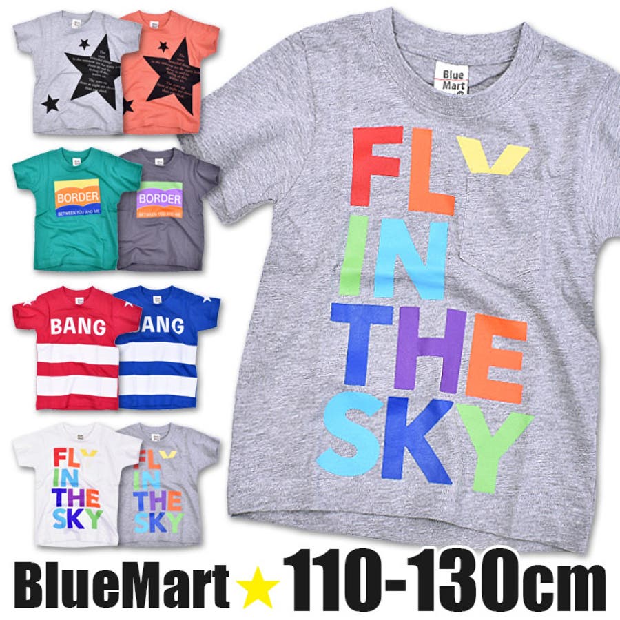 Blue Mart ブルーマート Tシャツ 半袖 キッズ 男の子 女の子 男女兼用 おしゃれ かわいい 春 夏 シャツ トップス 白 ホワイト 杢グレー グレー ブルー レッド グリーン オレンジ チャコール カラー プリント ロゴ ライン 星 スター 110cm 120cm 130cm 3657