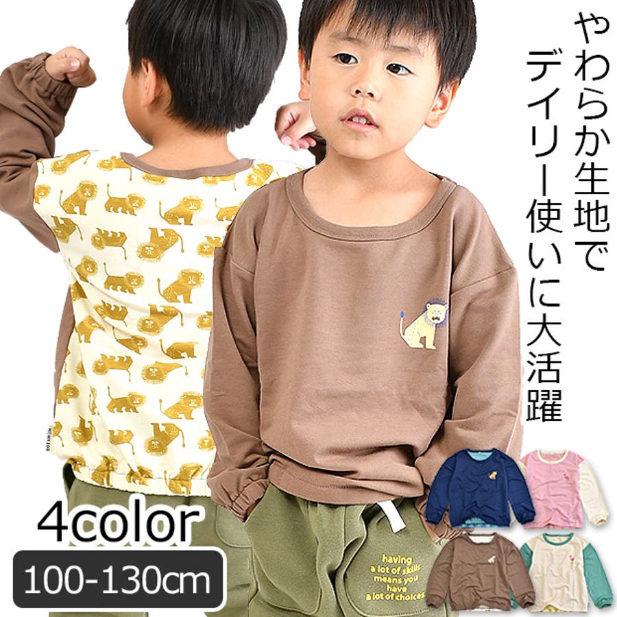 【HI!MYZOO】よりアニマルプリントがかわいい長袖カットソーの登場です!バックは総柄仕様でとっても可愛い長袖Tシャツ。カラーはブラウン・ピンク・ネイビー・アイボリーの4色展開。サイズは、100cm・110cm・120cm・130cm。丈夫で速乾性のあるポリエステルと吸汗・吸湿に優れたコットンの混紡生地は軽くて動きやすくお子さまの動きを妨げません♪