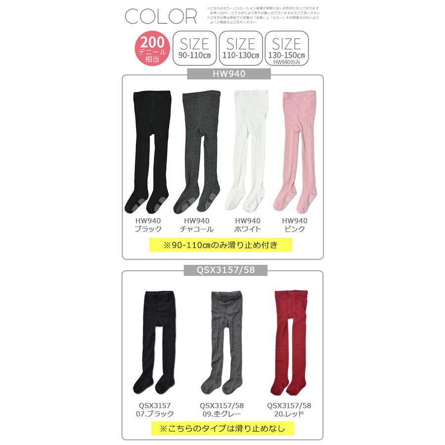 サイズ | 【90-110cm】滑り止め付きタイツ / 【110-130cm】タイツ / 【130-150cm】タイツ / 【90-110cm】滑り止め付なし |