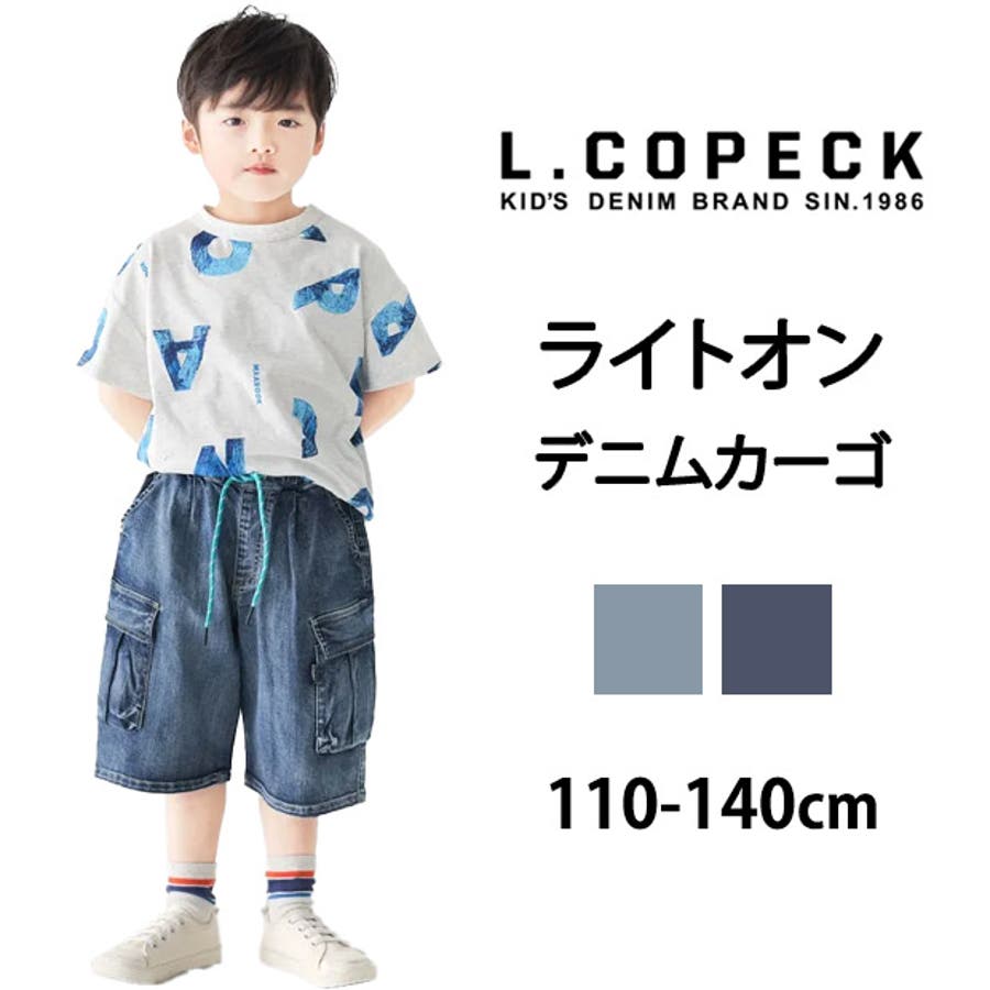 L.COPECK エルコペック 子供服 子ども 7分 7分丈 キッズ カーゴパンツ カーゴ デニムカーゴパンツ デニムパンツ ハーフパンツ 女の子 男の子 ジュニア パンツ ボトムス 紐パン デニム デニムハーフパンツ 春 夏 小学生 幼稚園 保育園 かわいい おしゃれ 子ども服 カーゴ ズボン パンツ 夏 ポケット デニム ブルー ネイビー フェード ゴムパンツ デニムカーゴパンツ 110cm 120cm 130cm 140cm 150cm 160cm