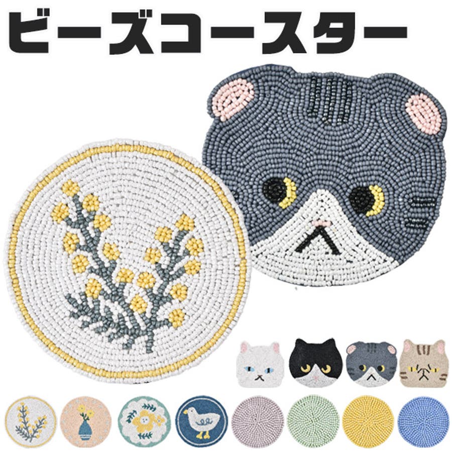 モチーフ柄ビーズコースター コースター ガラスビーズ おしゃれ かわいい カフェ 無地 飲食 レストラン 動物 花 ねこ プレゼント 贈り物 北欧 ハンドメイド