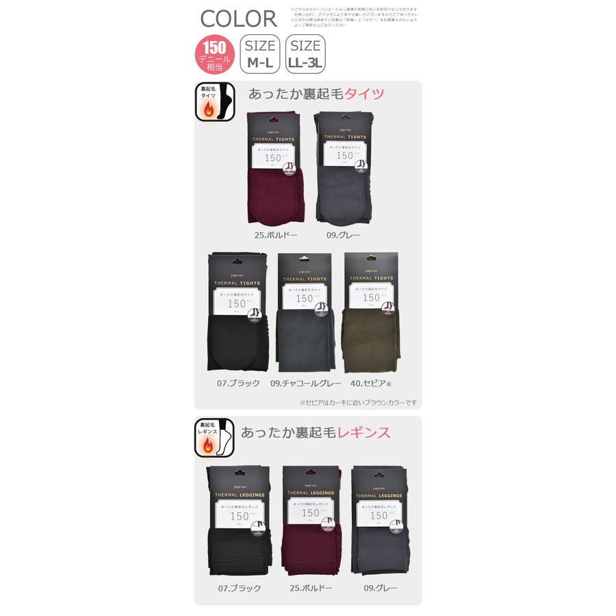 レディース タイツ レギンス 裏起毛 150デニール相当 裏起毛 カラータイツ 裏起毛タイツ M L LL 3L 黒 ブラック グレー ボルドー 赤 カラバリ 平編み スムース ストレッチ 伸縮 美脚 脚長 防寒 保温 あったか 屋外 野外 アウトドア 秋 冬 大きいサイズ 女性 婦人 あったか裏起毛タイツ M L LL 2L 3L XL