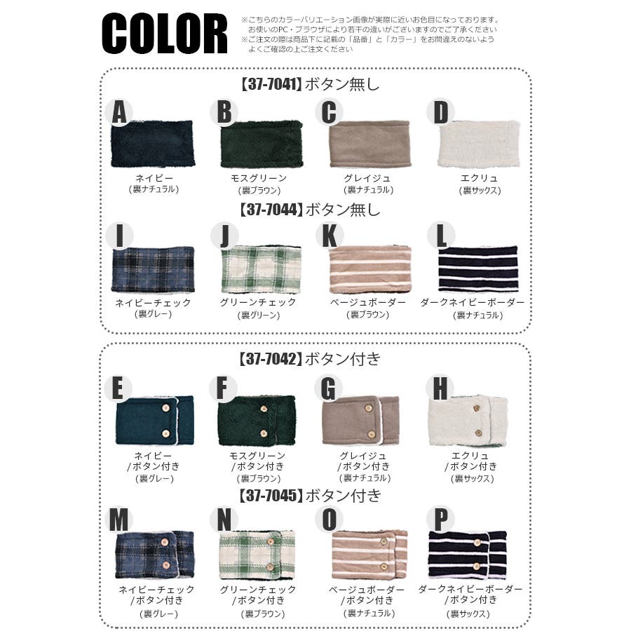 カラー | 37-7041【A】ネイビ- / 37-7041【B】モスグリ-ン / 37-7041【C】ベージュ / 37-7041【D】エクリュ / 37-7042【E】ネイビ-/ボタン / 37-7042【F】モスグリ-ン/ボタン / 37-7042【G】ベージュ/ボタン / 37-7042【H】エクリュ/ボタン / 37-7044【I】チェックNV / 37-7044【J】チェックGR / 37-7044【K】ボーダーBE / 37-7044【L】ボーダーNV / 37-7045【M】チェックNV/ボタン / 37-7045【N】チェックGR/ボタン / 37-7045【O】ボーダーBE/ボタン / 37-7045【P】ボーダーNV/ボタン |