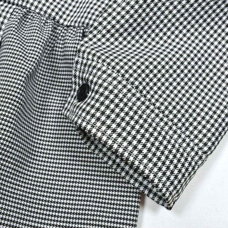 スカート部分は異なる柄の生地と切り替え、周りと差がつくアクセントのあるシャツワンピースに仕上げました。