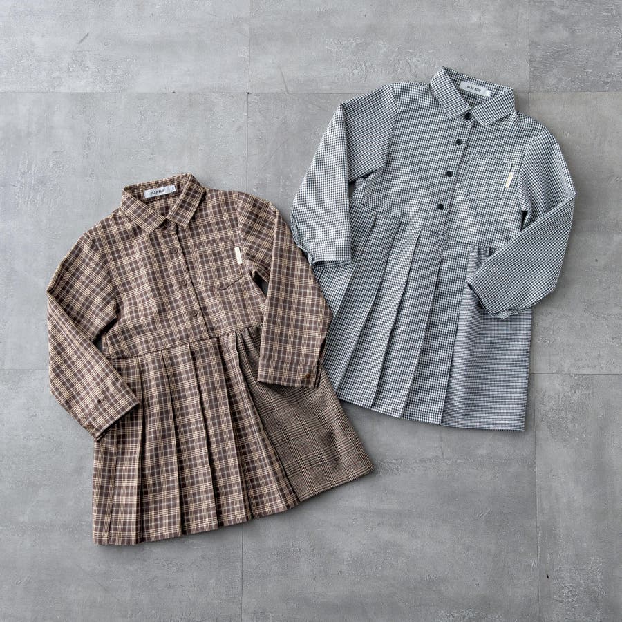 【お揃い】千鳥格子タータンチェック柄シャツワンピース(90~130cm)