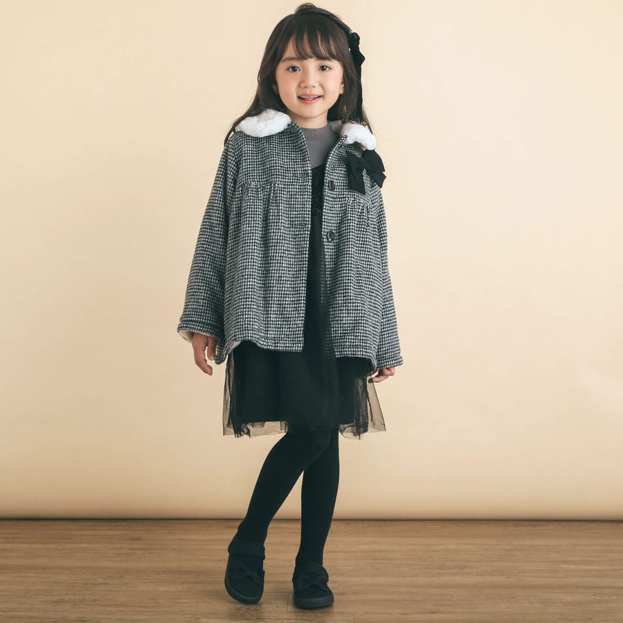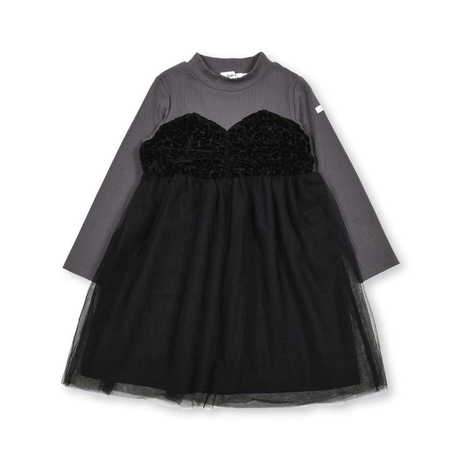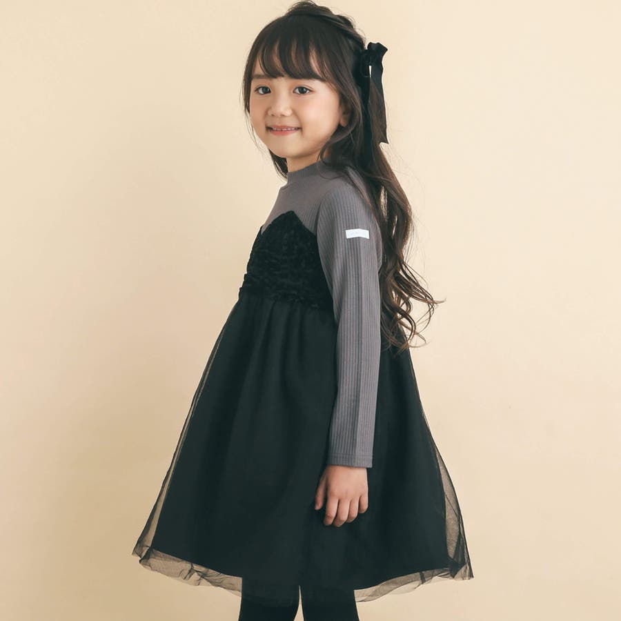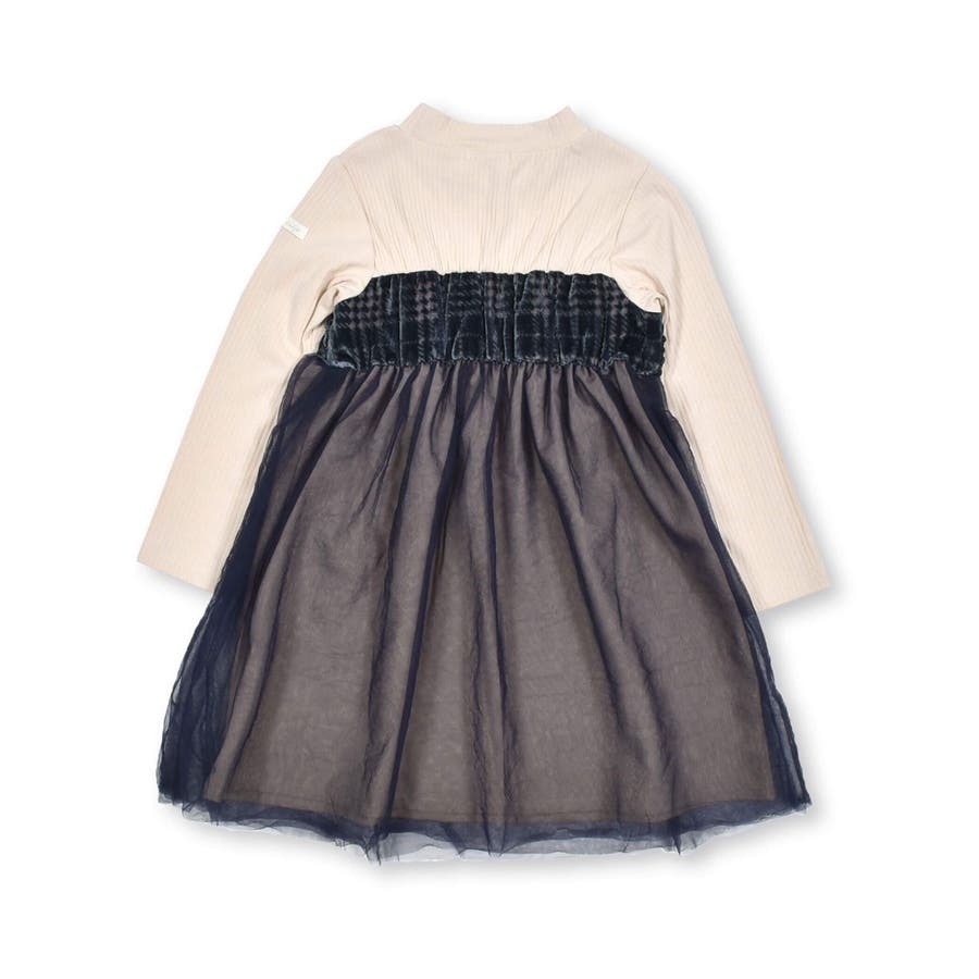 花柄チェック柄チュールドッキングワンピース(80~130cm)