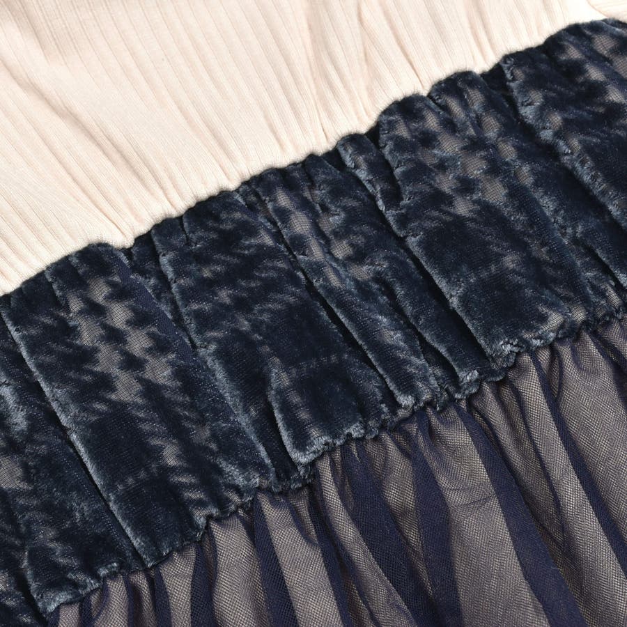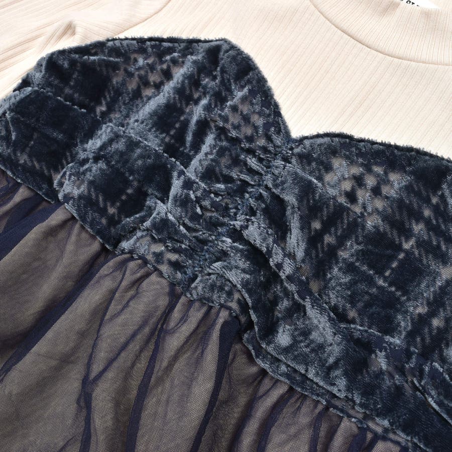 | 素材 | (上身頃)レーヨン95% ポリウレタン5% (スカート部分) ポリエステル95% ポリウレタン5% (チュール部分)ポリエステル100% |