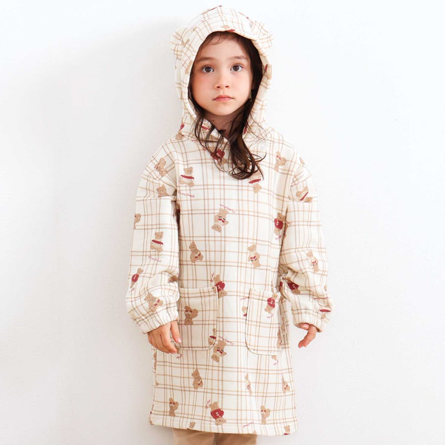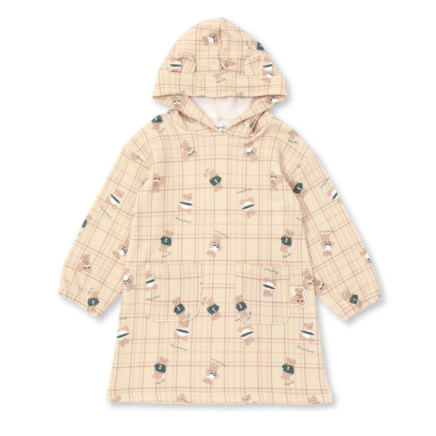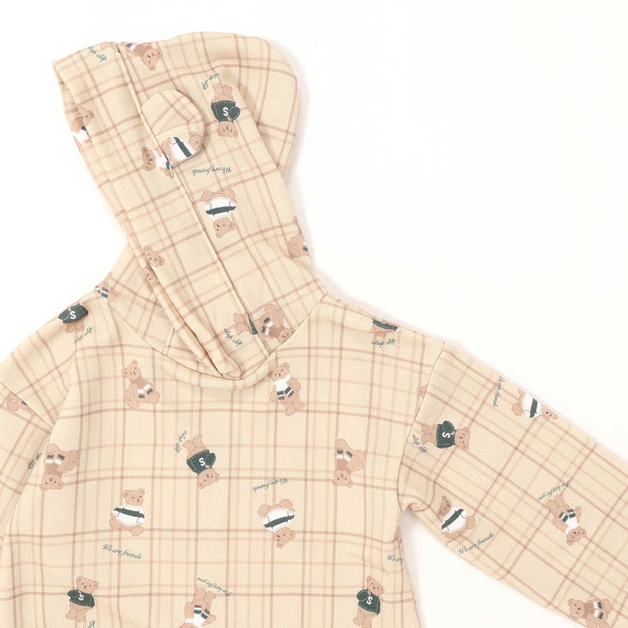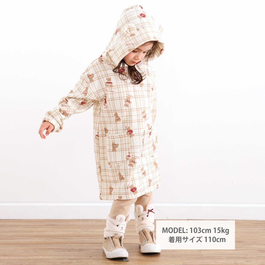 【お揃い】アニマルクマさん総柄クマ耳フード付きワンピース(80~130cm)