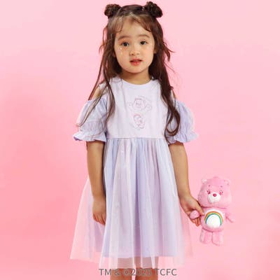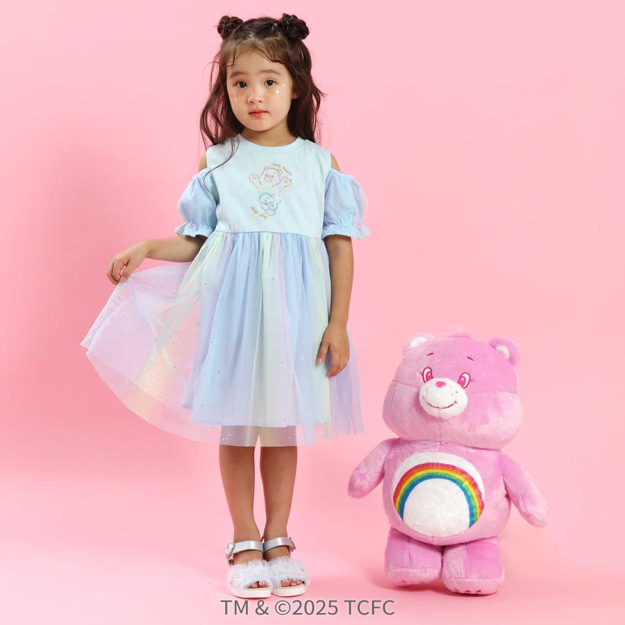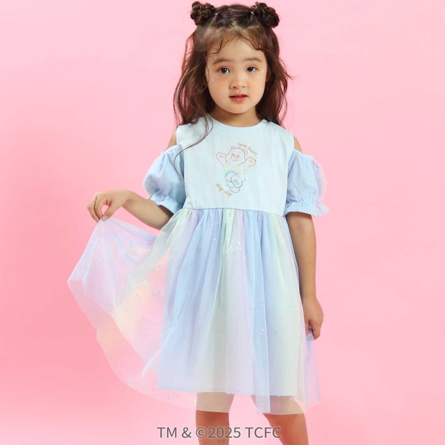 【ケアベア×SLAP SLIP】キラキラプリント肩あきチュールワンピース(100…